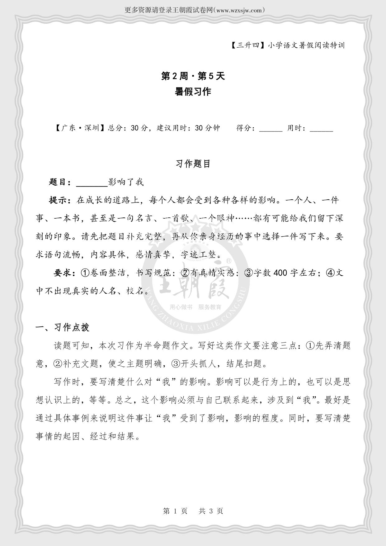 【三升四】小学语文暑假阅读特训第2周第5天 暑假习作