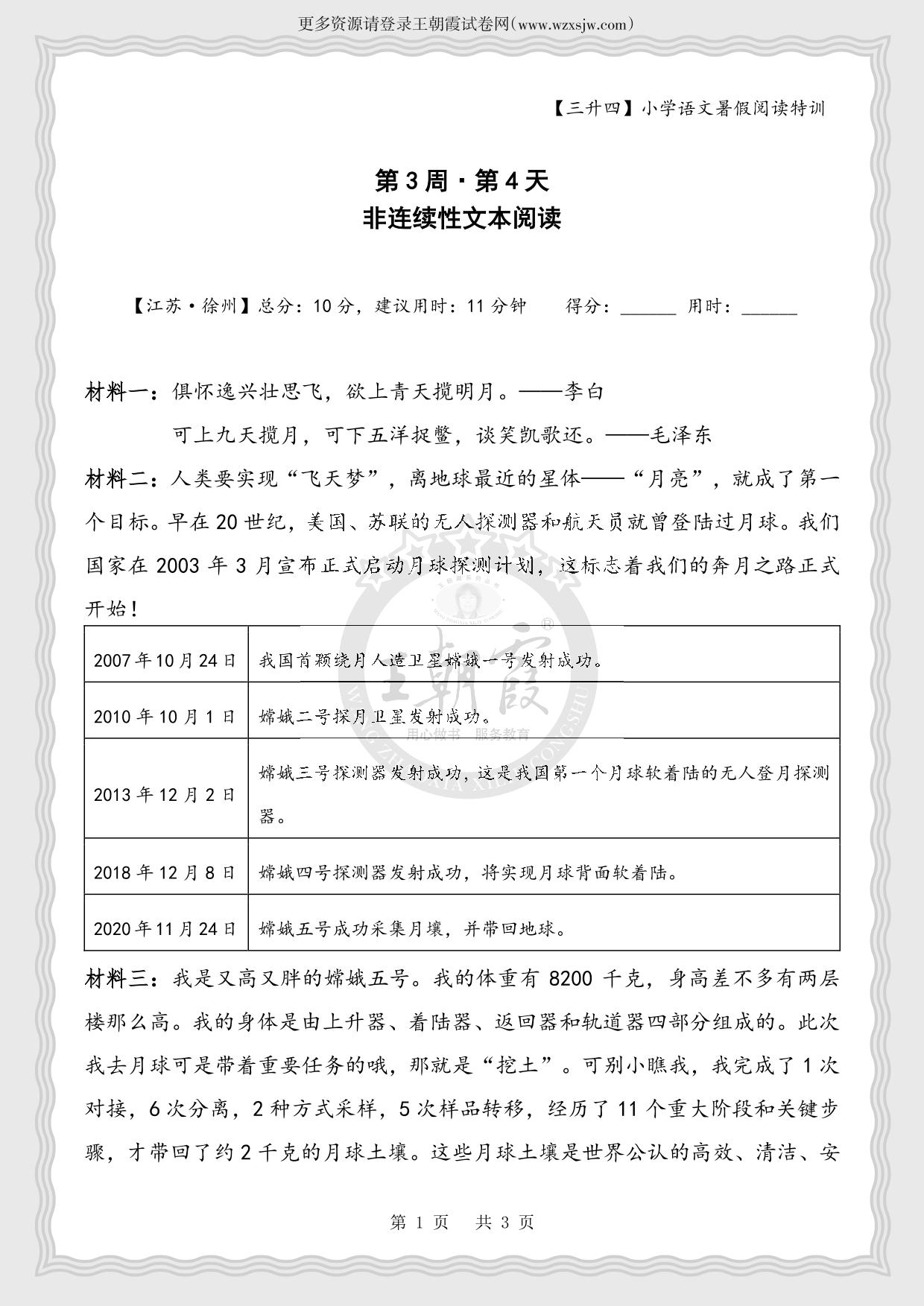 【三升四】小学语文暑假阅读特训第3周第4天 非连续性文本阅读