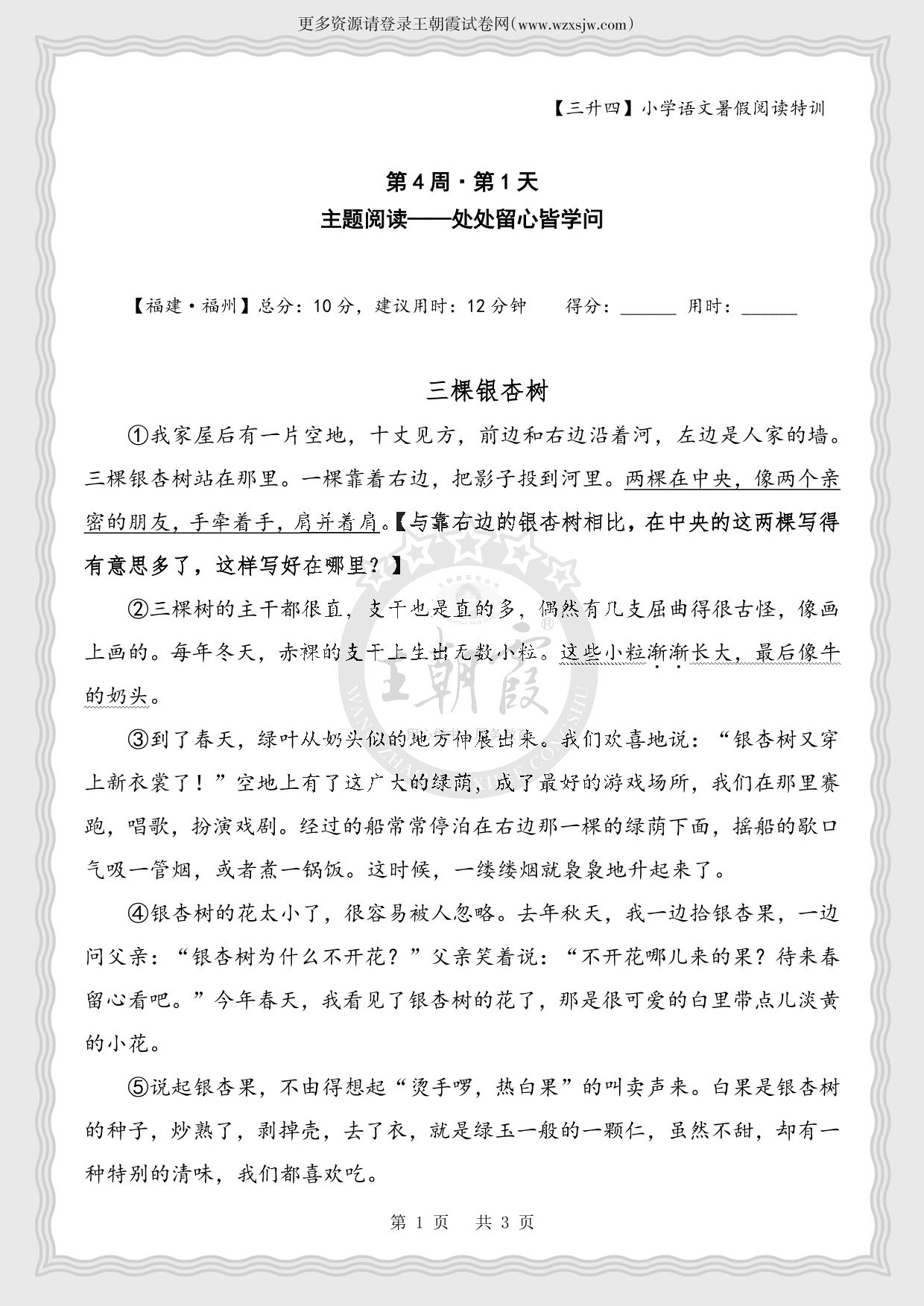 【三升四】小学语文暑假阅读特训第4周第1天 主题阅读 处处留心皆学问