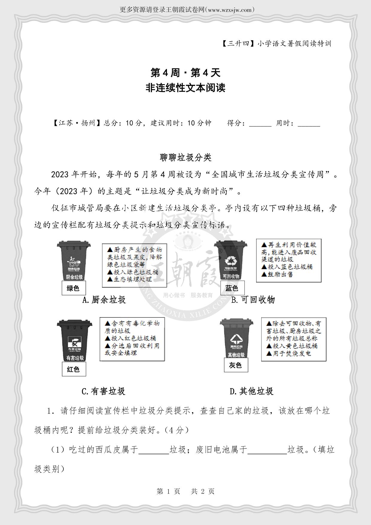 【三升四】小学语文暑假阅读特训第4周第4天 非连续性文本阅读