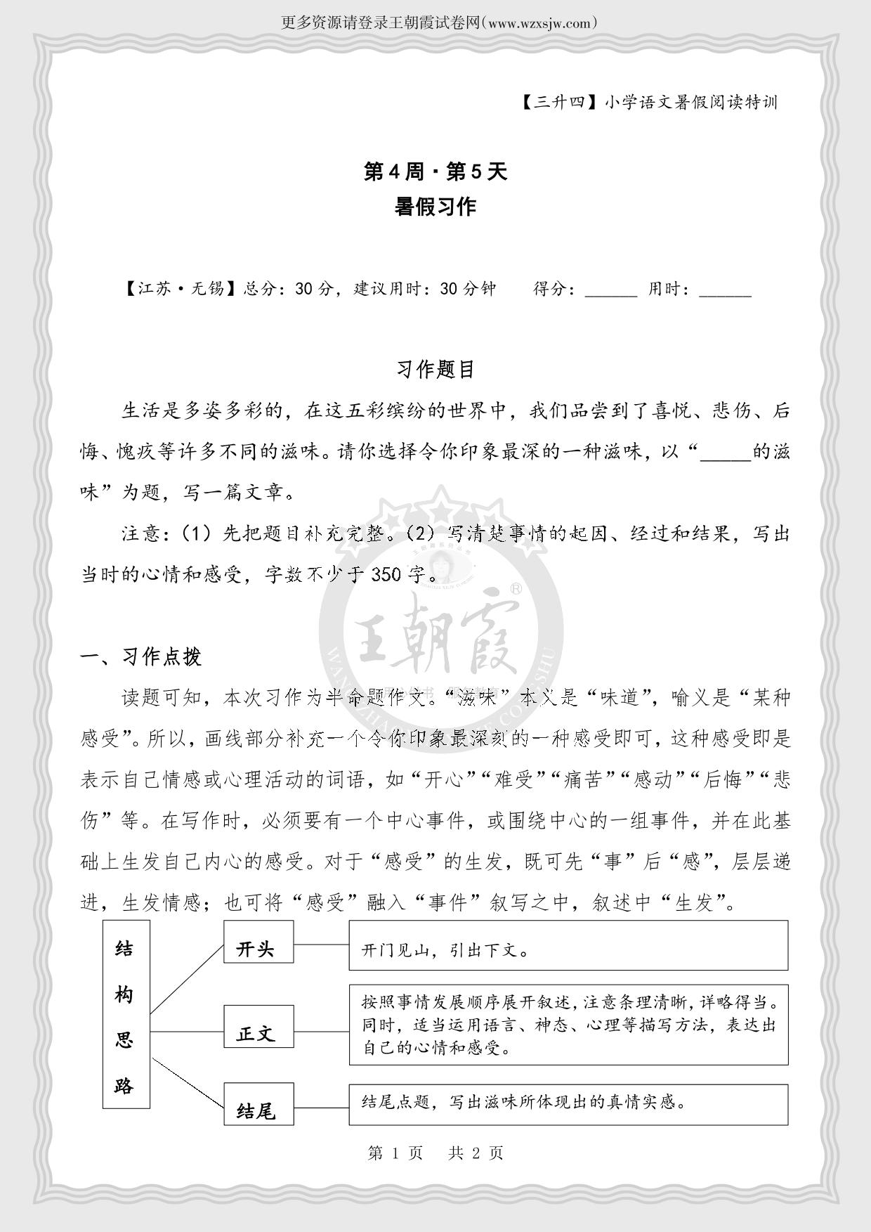 【三升四】小学语文暑假阅读特训第4周第5天 暑假习作