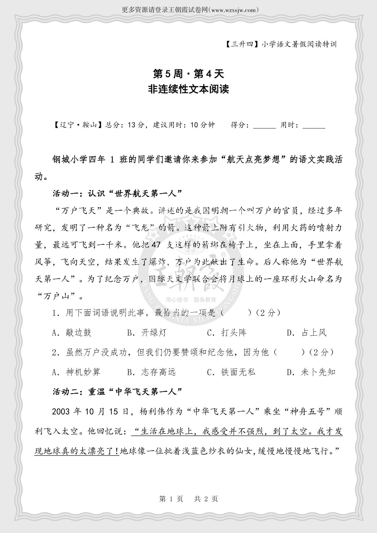 【三升四】小学语文暑假阅读特训第5周第4天 非连续性文本阅读