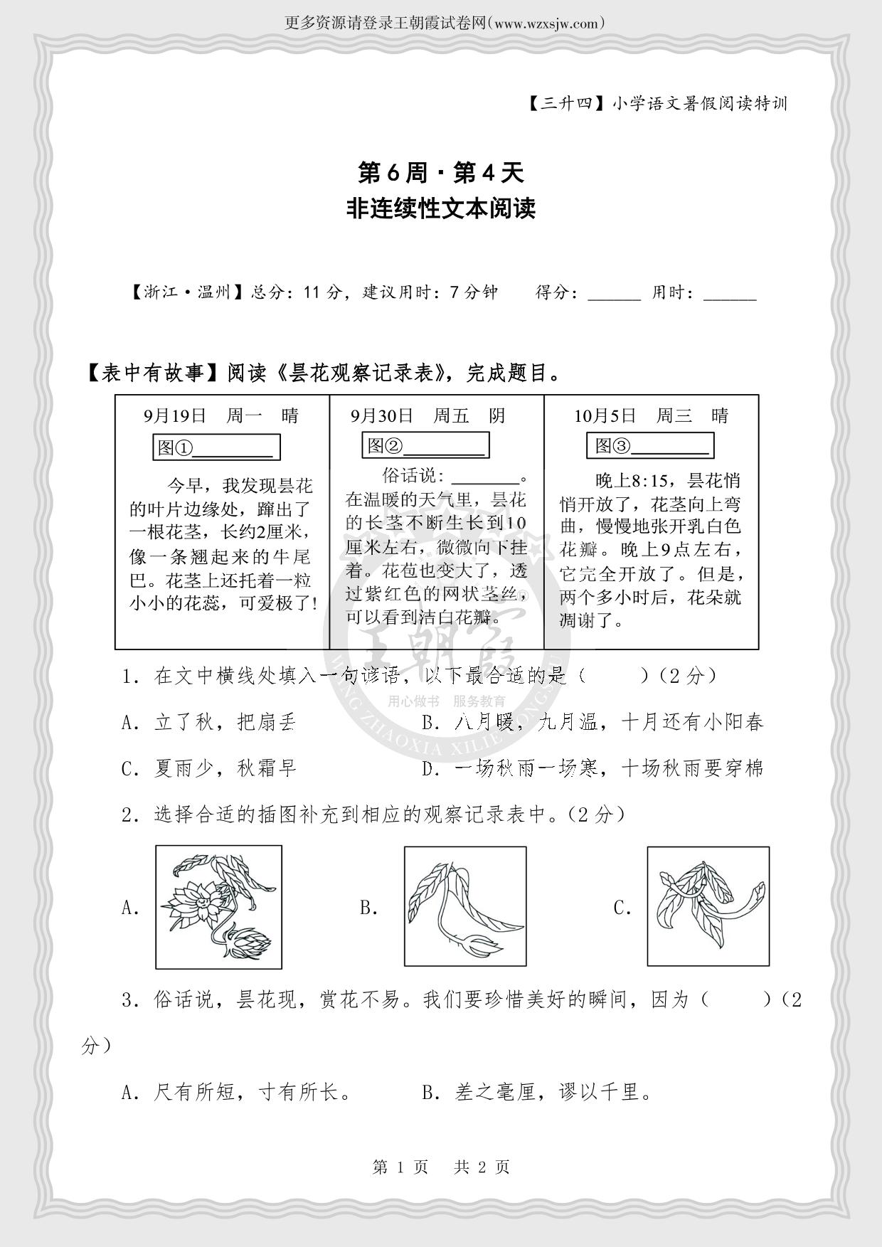 【三升四】小学语文暑假阅读特训第6周第4天 非连续性文本阅读