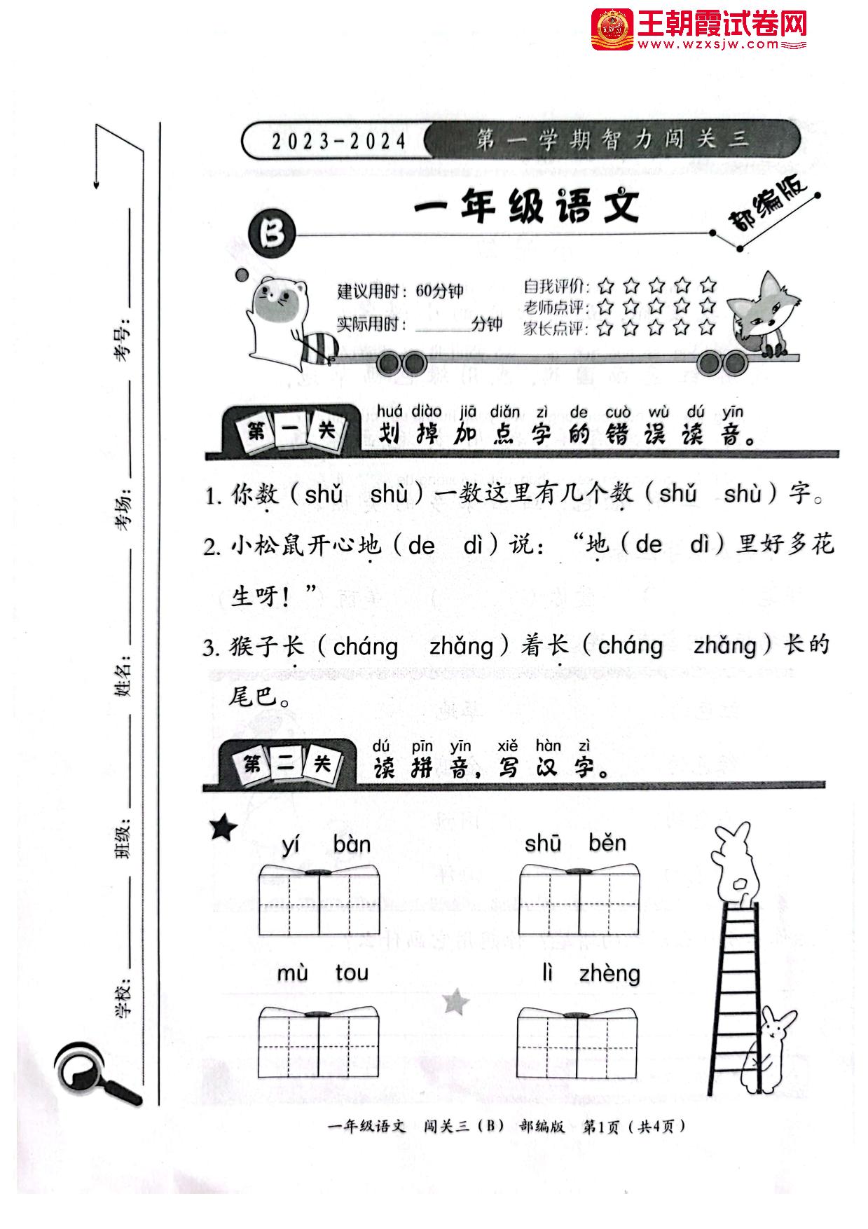 河北省邢台市威县第四小学2023-2024学年第一学期第三次月考一年级语文(人教版)