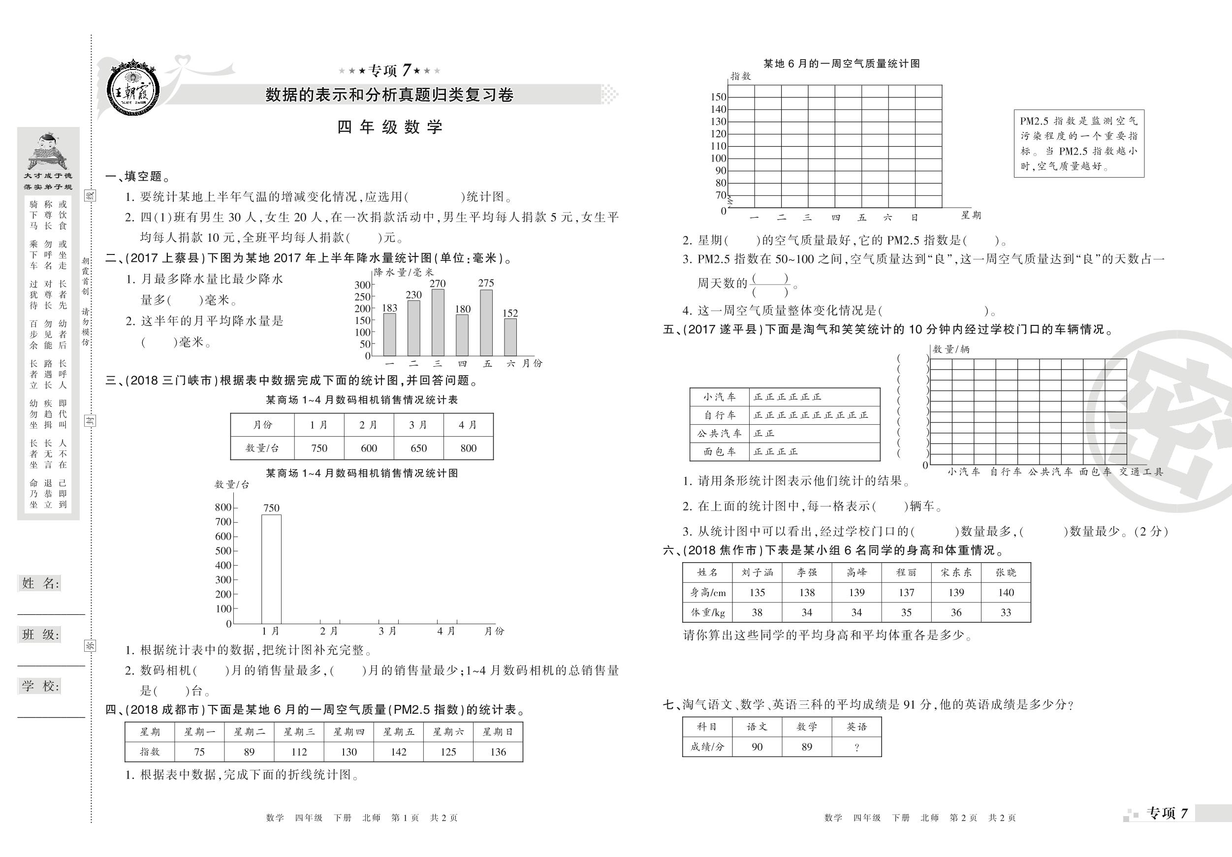 王朝霞期末专项卷——数据的表示和分析 观察物体、数学好玩真题归类复习卷四年级下册数学(北师版)_R210804150718【0】