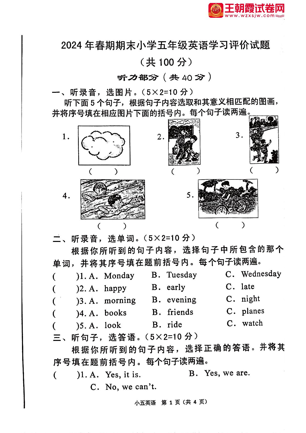 河南省南阳市宛城区2023-2024学年下学期期末学习评价测试题五年级英语(北师版)
