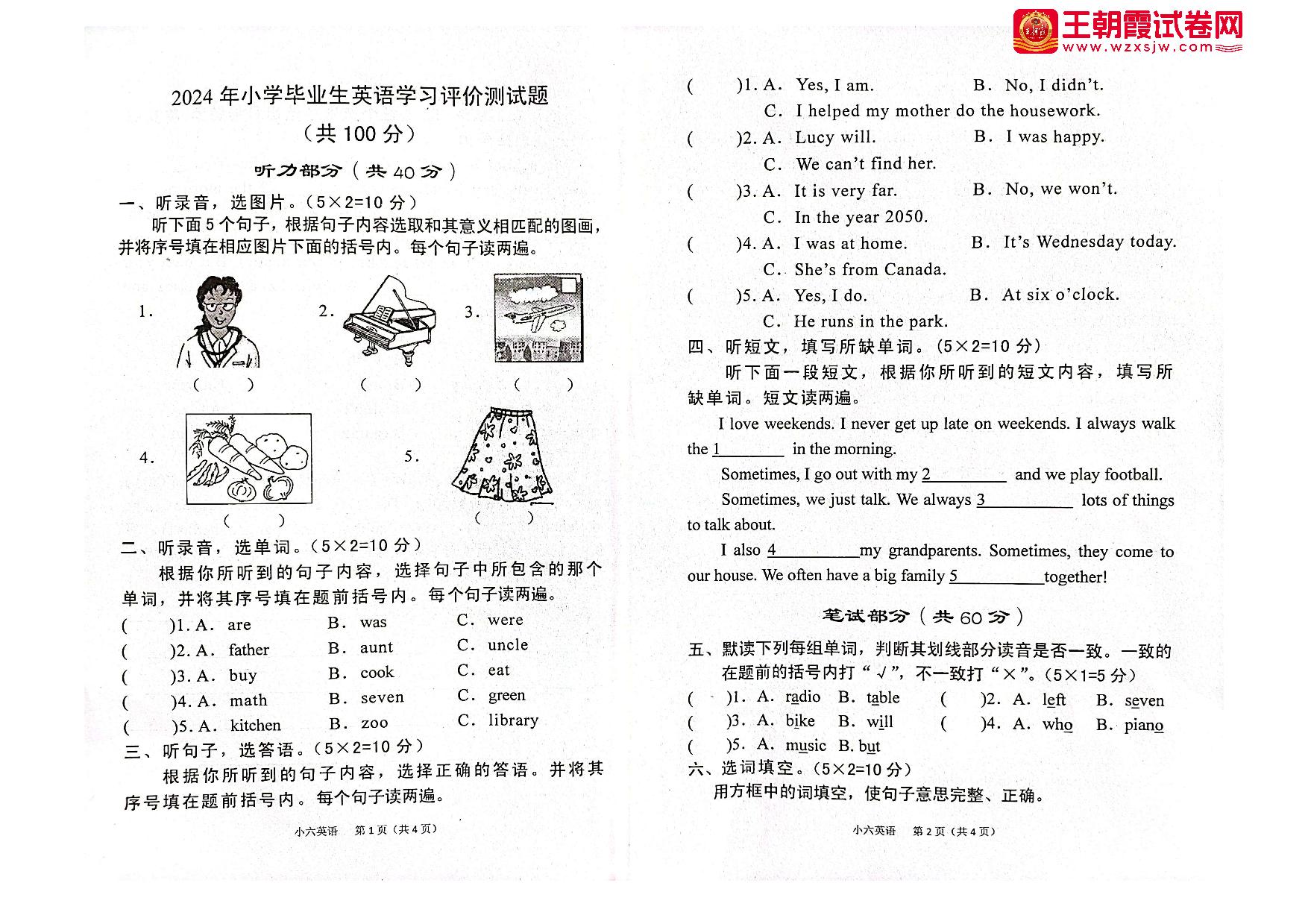 河南省南阳市宛城区2023-2024学年下学期期末学习评价测试题六年级英语(北师版)