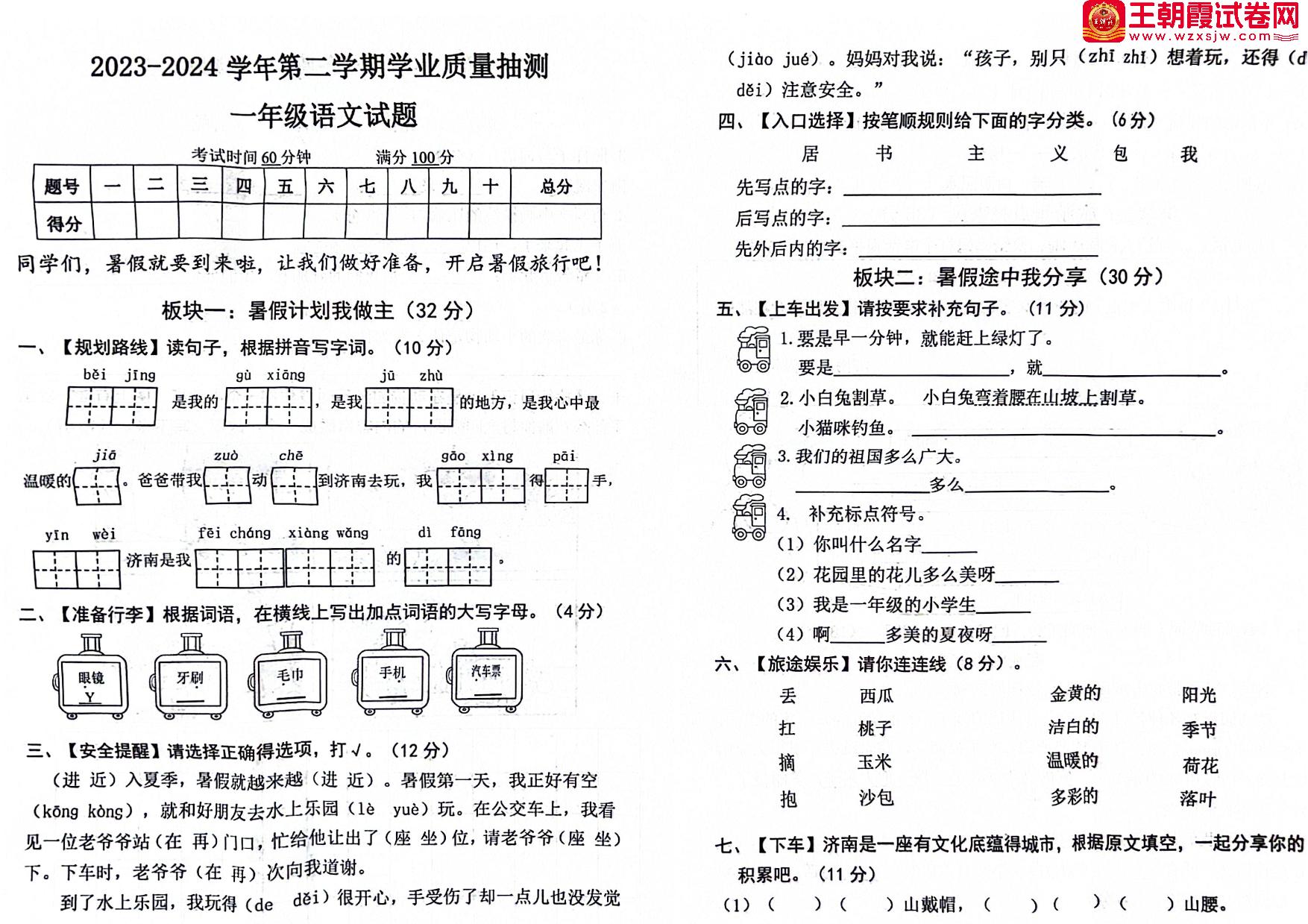 一年级语文人教版下册期末卷