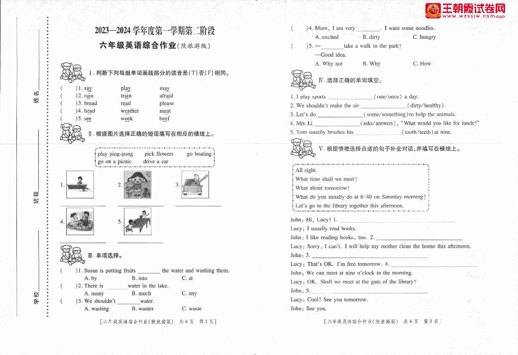 陕西省延安市富县2023-2024学年级第一学期第二阶段综合作业(期中)六年英语(陕旅版)
