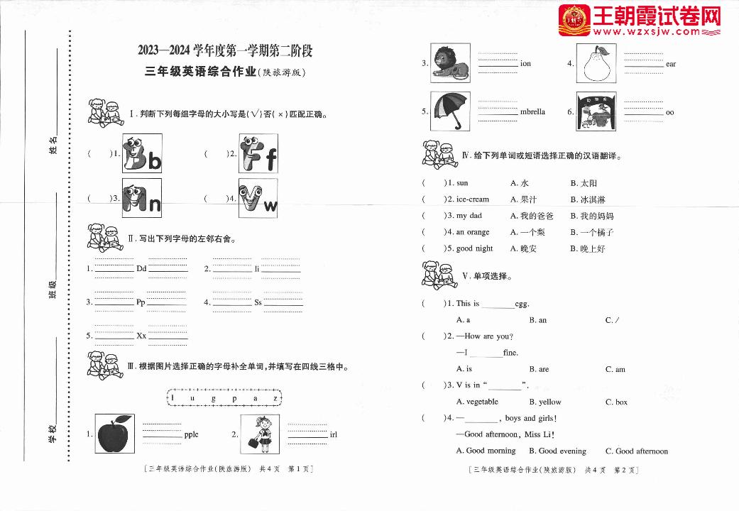 陕西省延安市富县2023-2024学年级第一学期第二阶段综合作业(期中)三年英语(陕旅版)