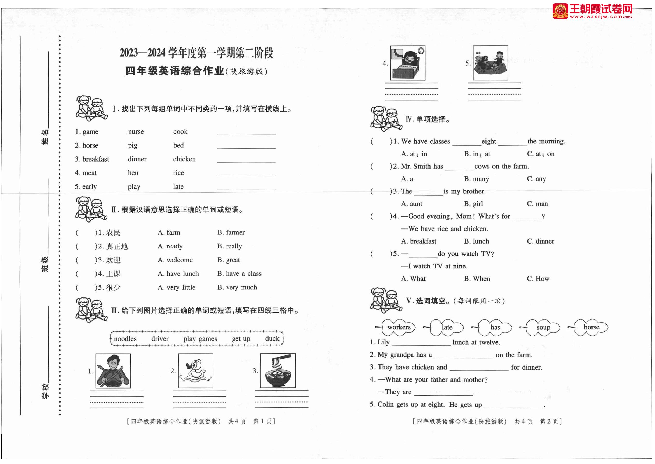 陕西省延安市富县2023-2024学年级第一学期第二阶段综合作业(期中)四年英语(陕旅版)
