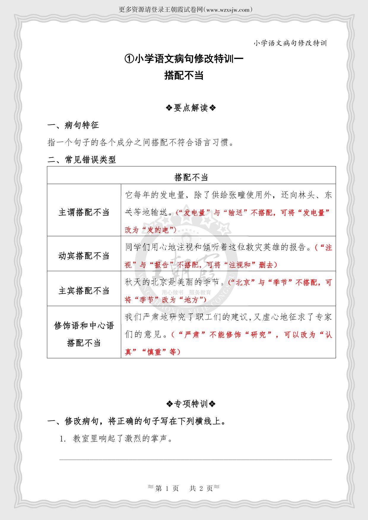①小学语文病句修改特训一·搭配不当