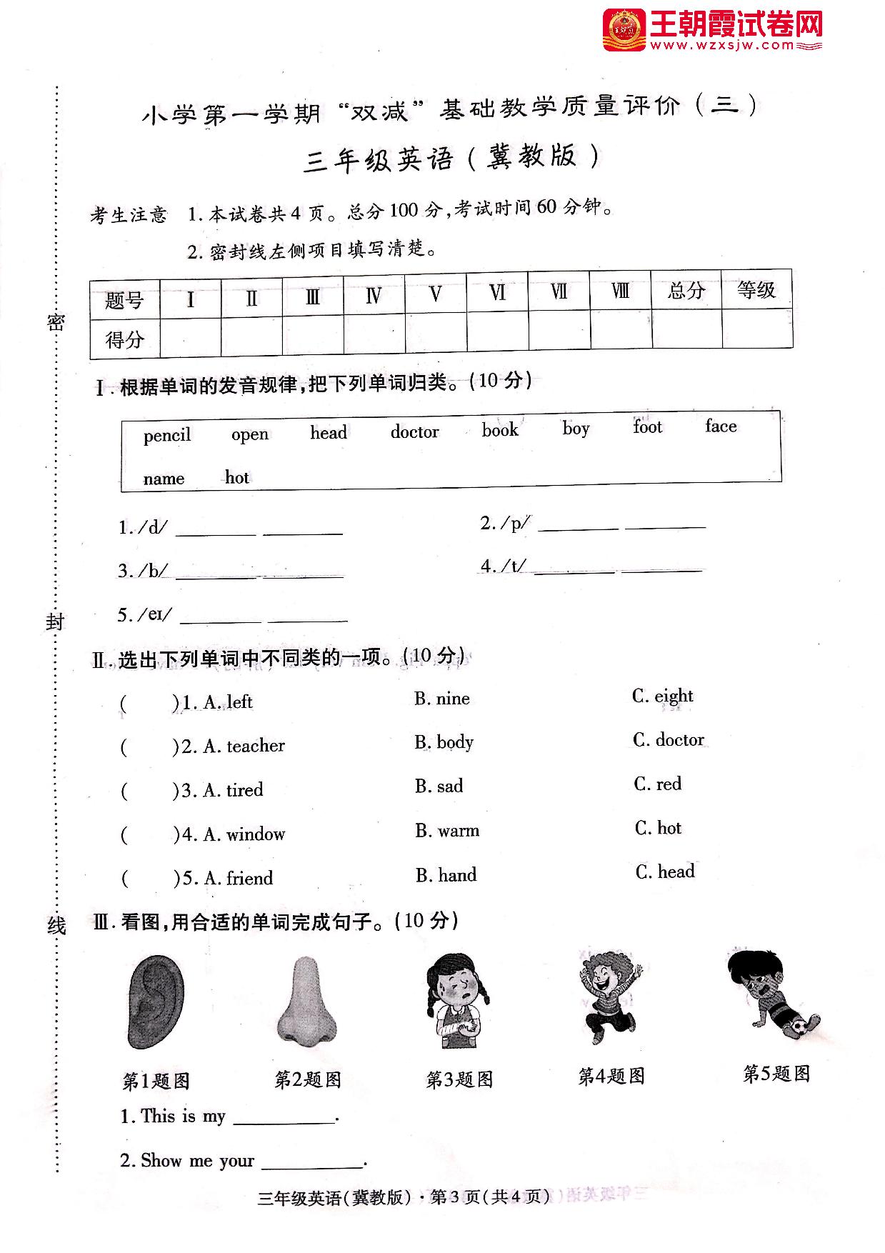 河北省邯郸市广平县2023-2024学年第一学期“双减”基础教学质量评价三(月考)三年级英语(冀教版)