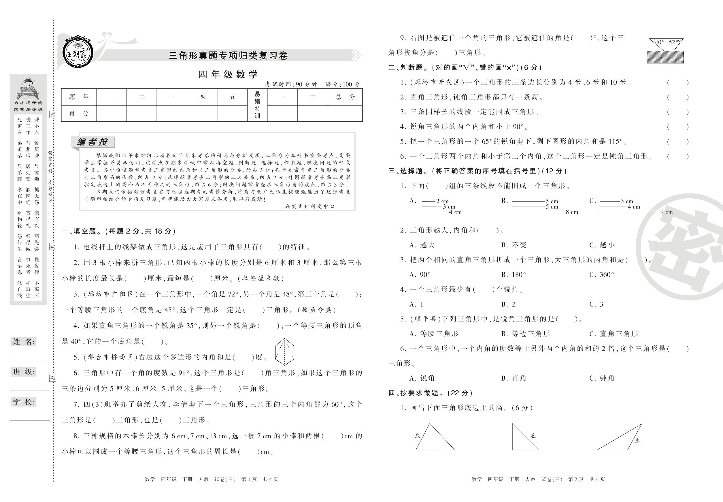 王朝霞期末专项卷四年级下册数学(人教版)_R210804150859【3】