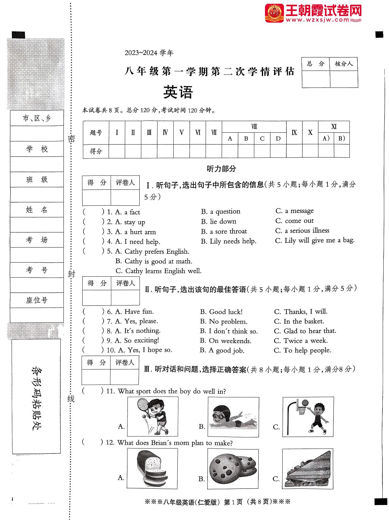 河北省沧州市任丘市第八中学2023-2024学年第一学期第二次学情评估(期中)八年级英语(新课标版)
