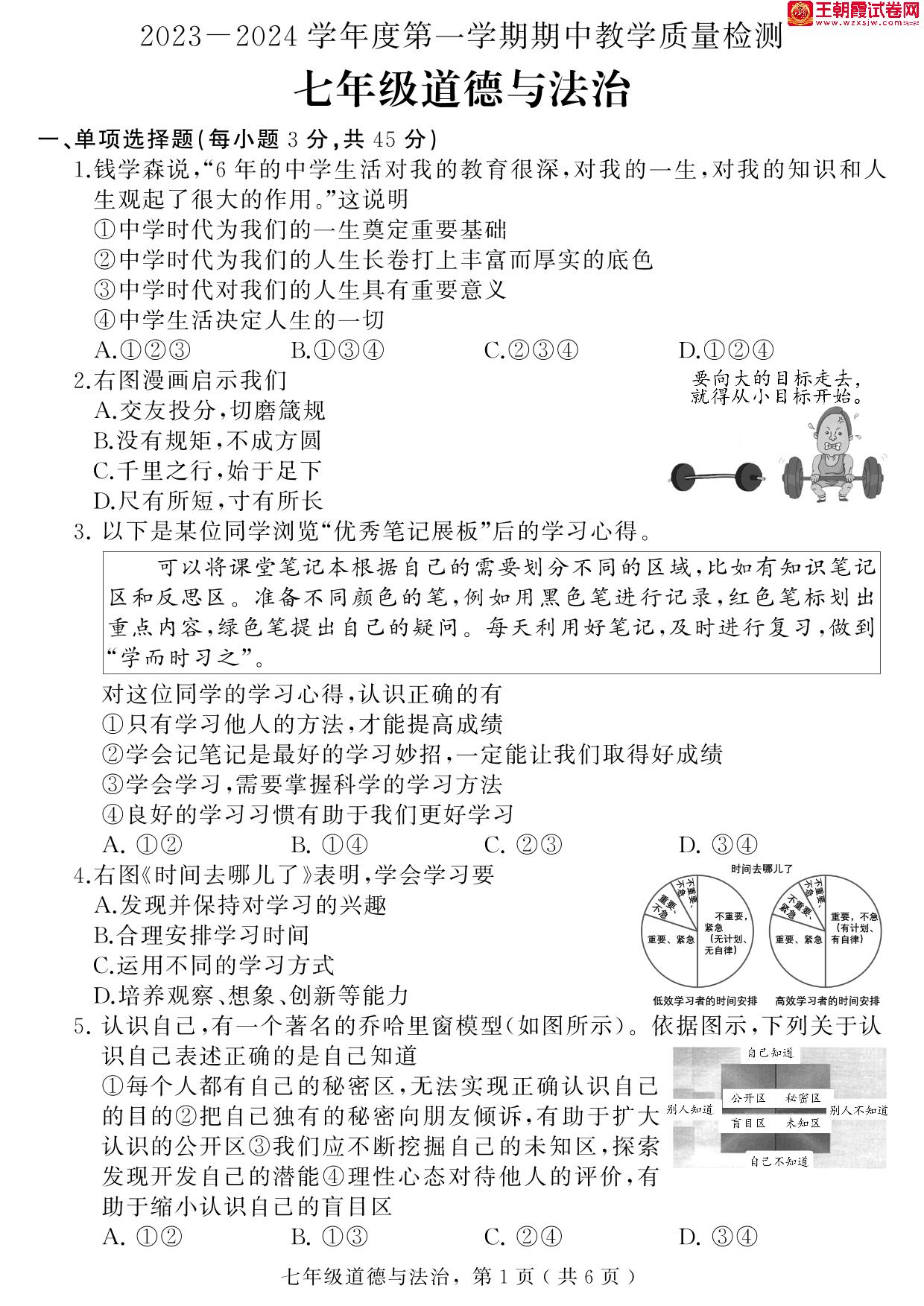 河北省石家庄市栾城区2023-2024学年度第一学期期中教学质量检测七年级道德与法治(人教版)