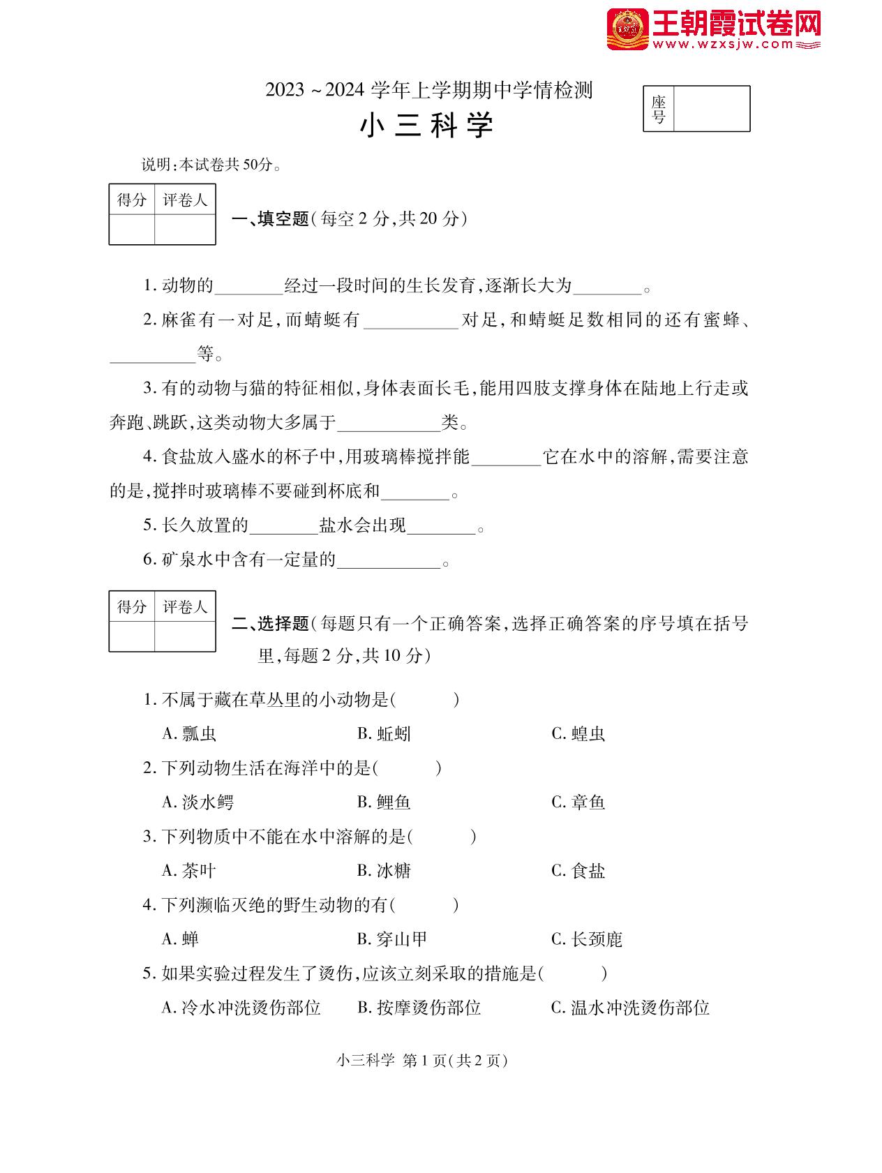 河南省平顶山市郏县2023-2024学年上学期期中学情检测试题三年级科学(粤教粤科版)