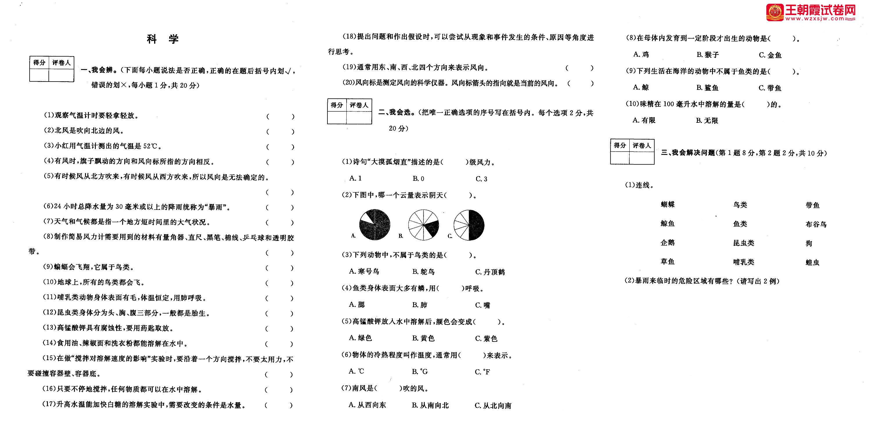 三年级科学大象版上册期中卷