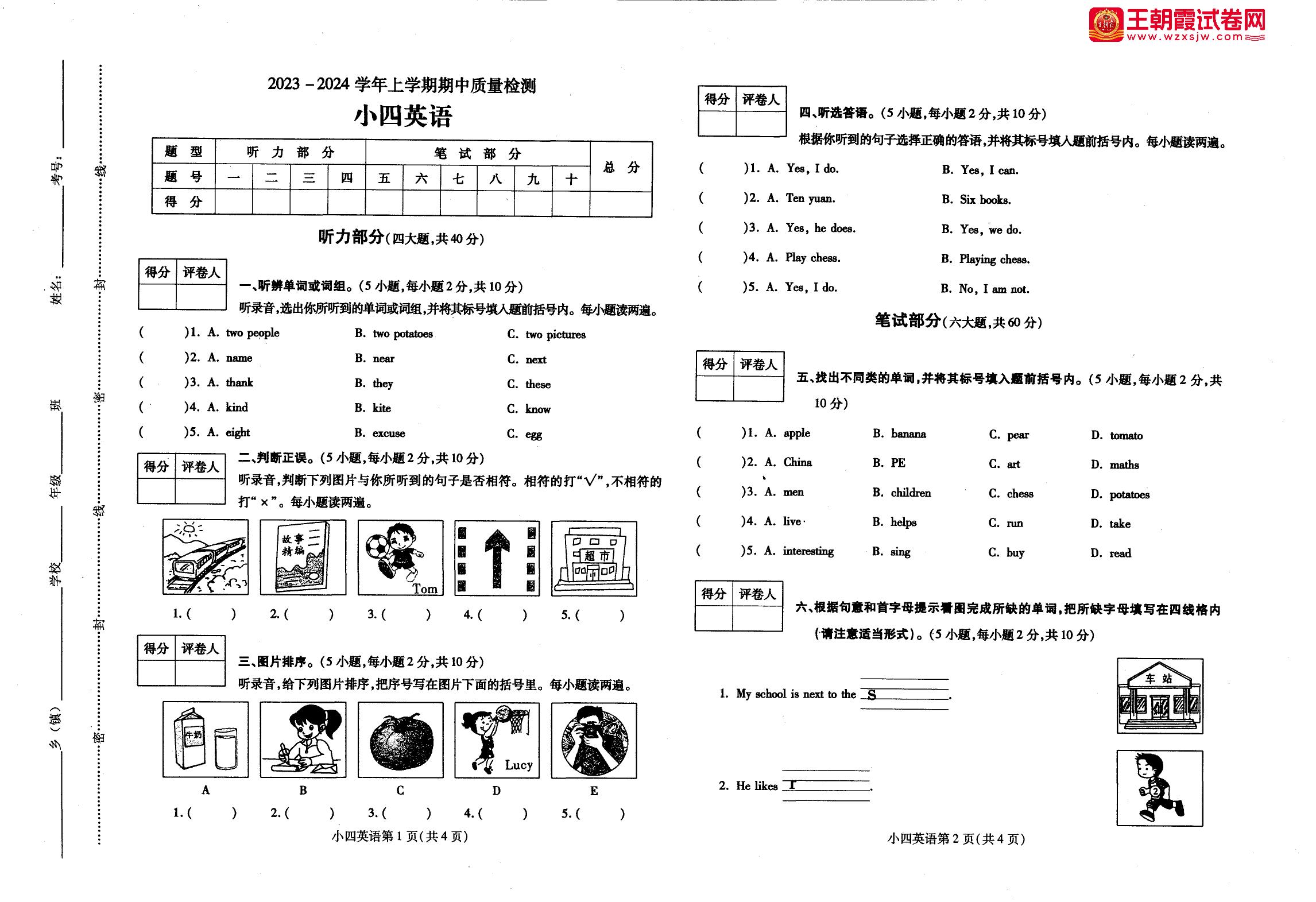 河南省平顶山市汝州市2023-2024学年上学期期中质量检测试题四年级英语(外研版·三起始)