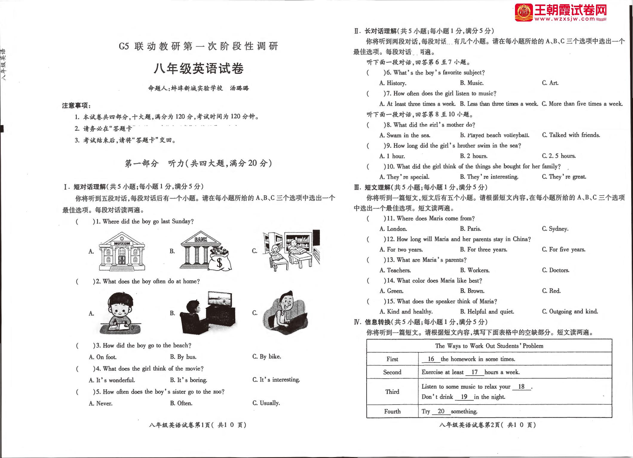 安徽省蚌埠市蚌山区G5联动教研2023-2024学年上学期10月月考试题八年级英语(人教版)【无听力音频】