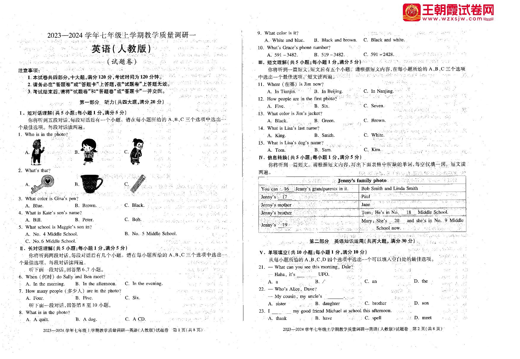 安徽省六安市霍邱县2023-2024学年上学期(月考)教学质量调研七年级英语(人教版)