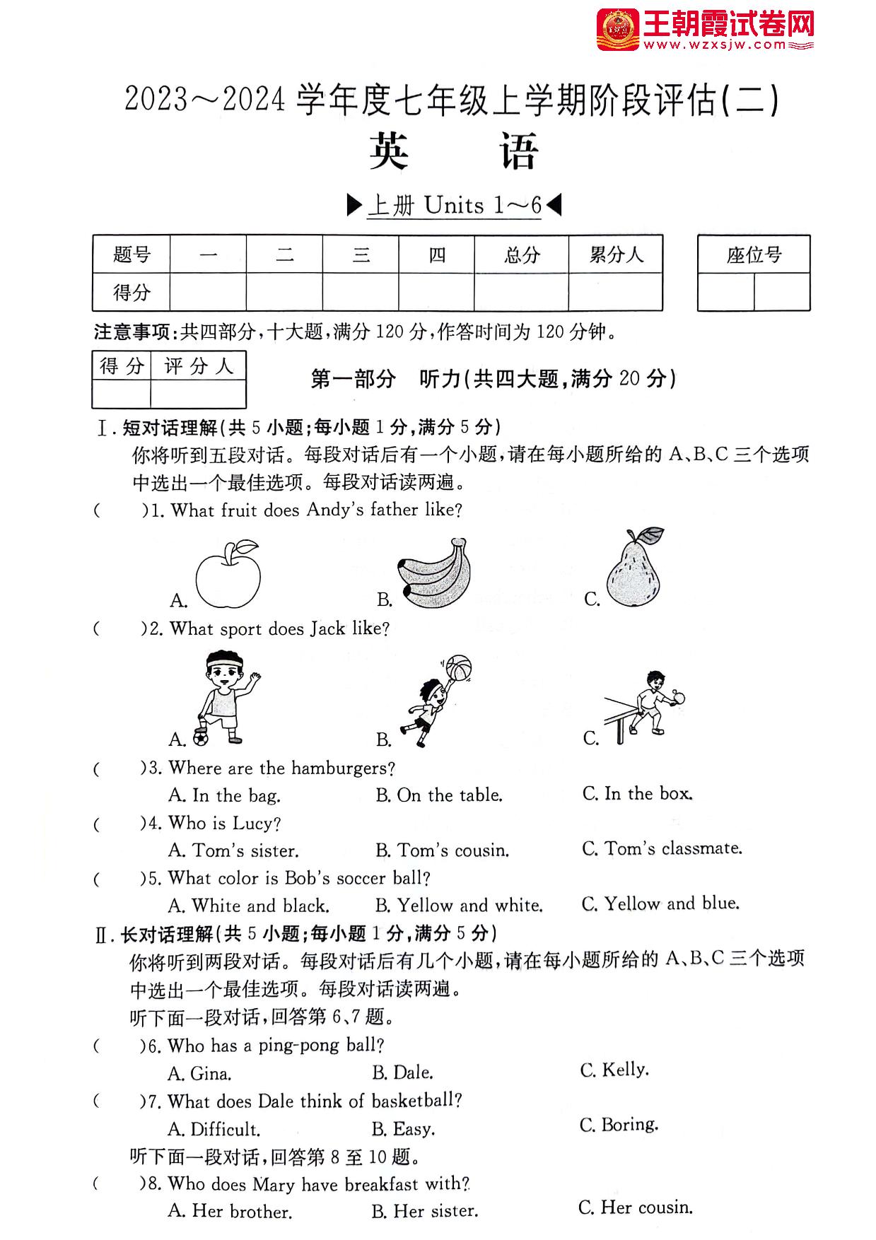 安徽省芜湖市无为市多校联考2023-2024学年度上学期(月考)12月阶段评估七年级英语(人教版)