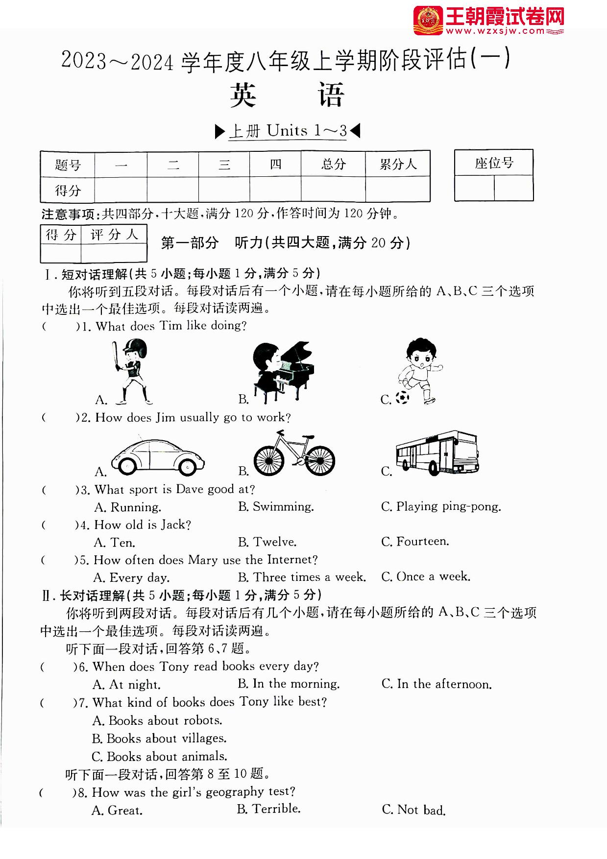 安徽省芜湖市无为市多校联考2023-2024学年度上学期(月考)10月阶段评估八年级英语(人教版)