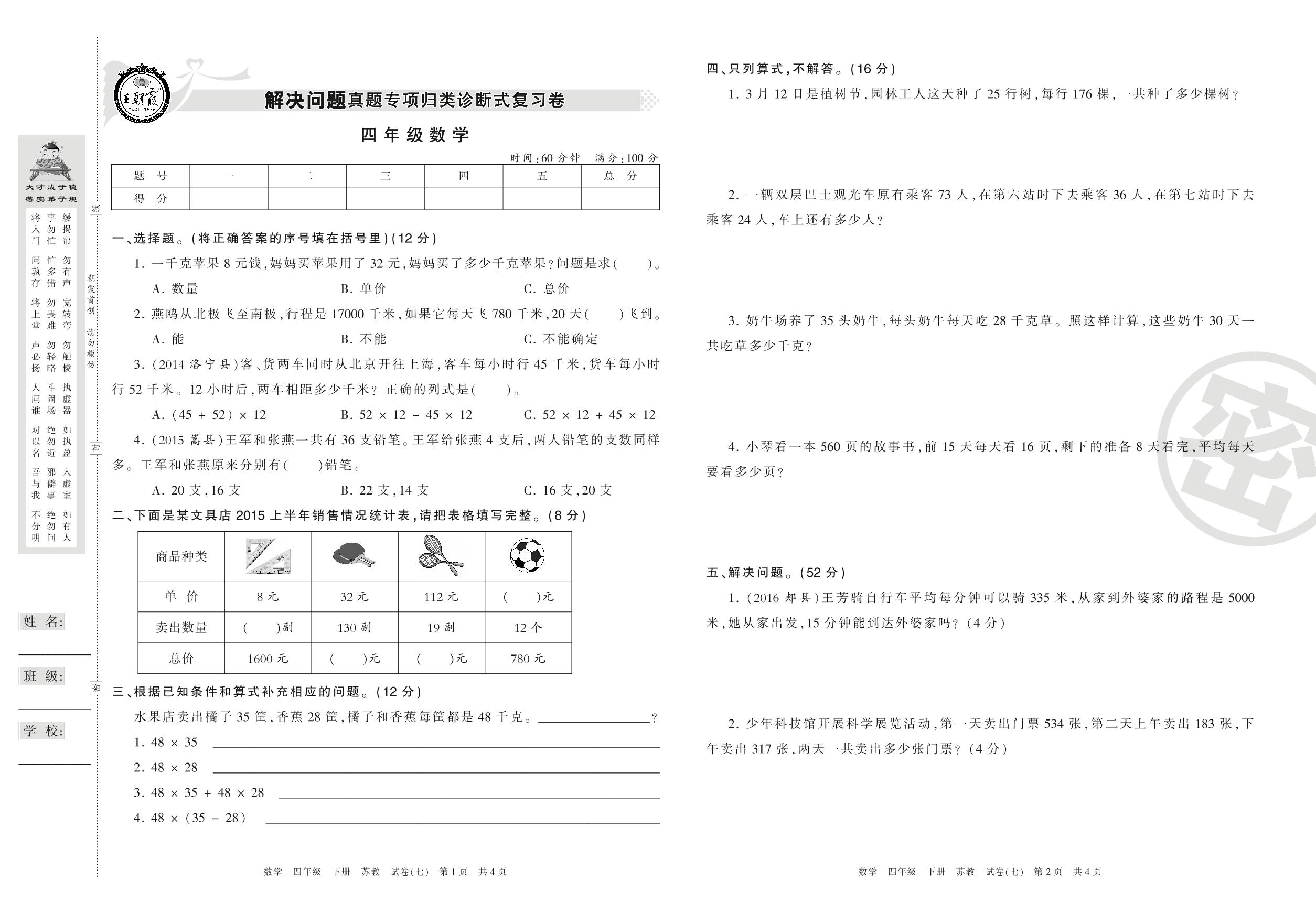 王朝霞期末专项卷四年级下册数学(苏教版)_R210804151003【7】