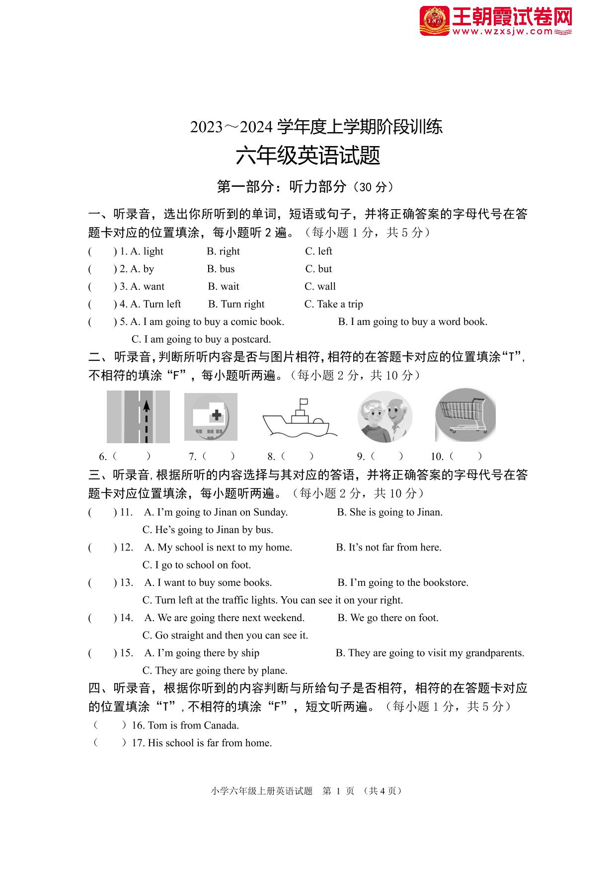 湖北省十堰市张湾区、郧阳区2023-2024学年度上学期期中阶段训练六年级英语(人教PEP版)