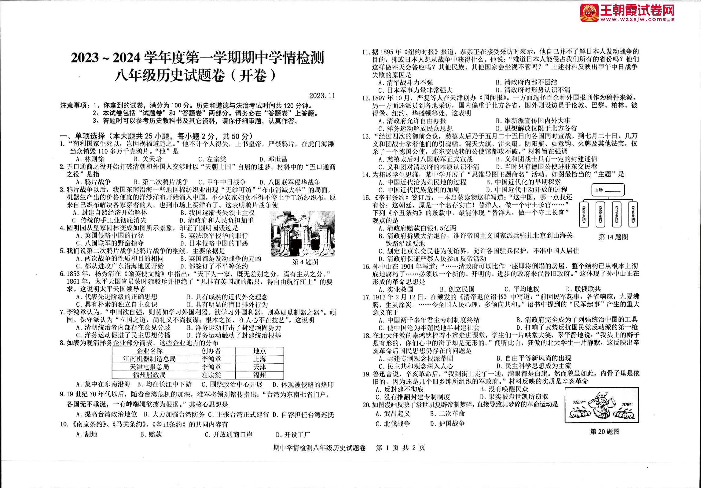八年级历史人教版上册期中卷