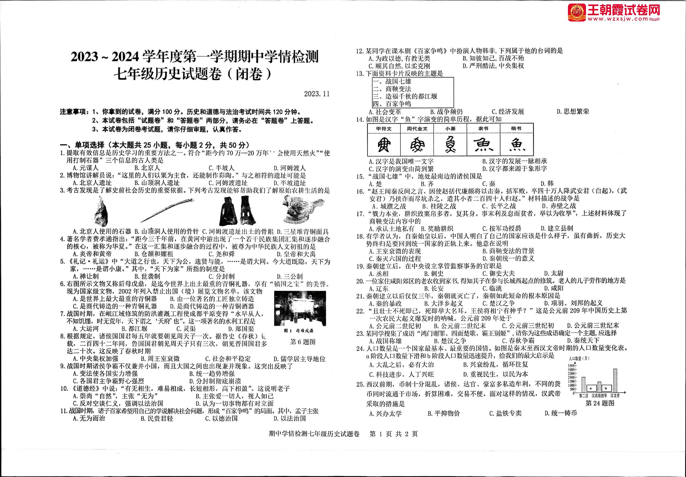 七年级历史人教版上册期中卷