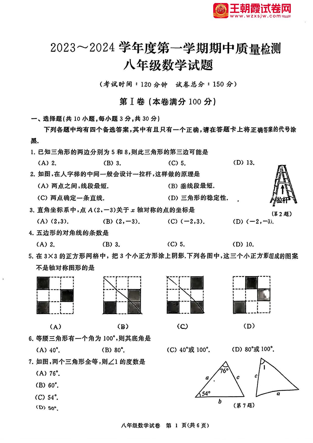 八年级数学沪科版上册期中卷