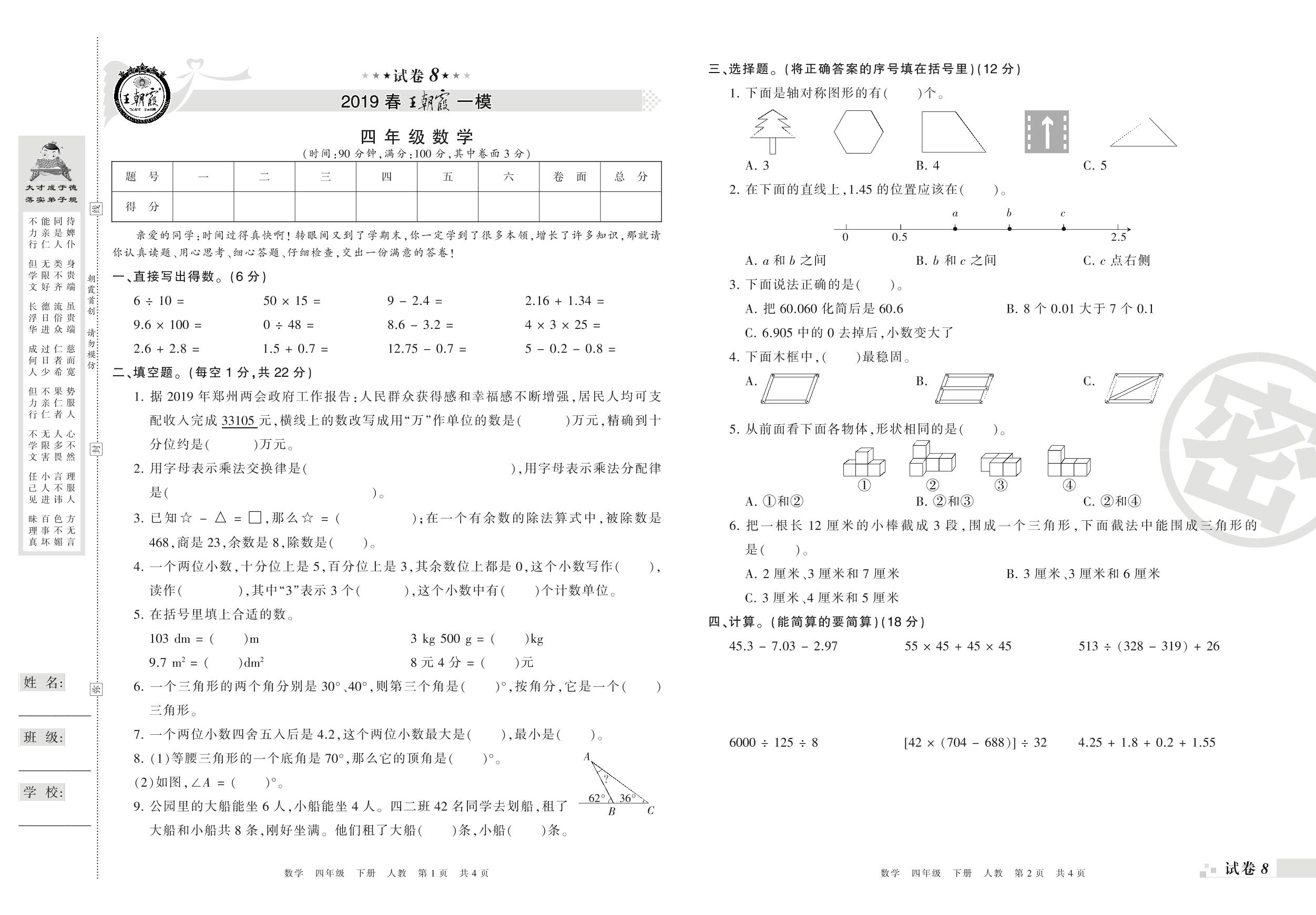 王朝霞期末模拟卷四年级下册数学(人教版)_R210804151124【8】
