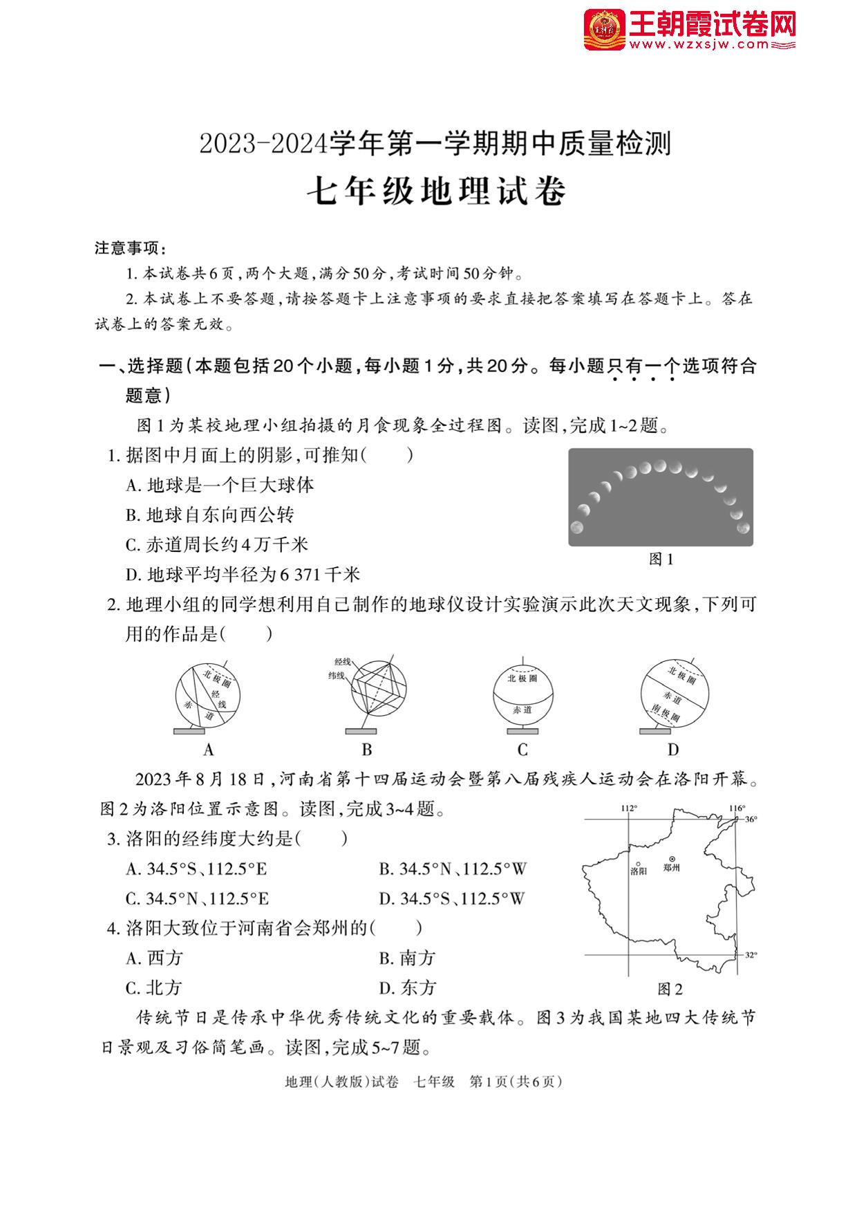 七年级地理人教版上册期中卷