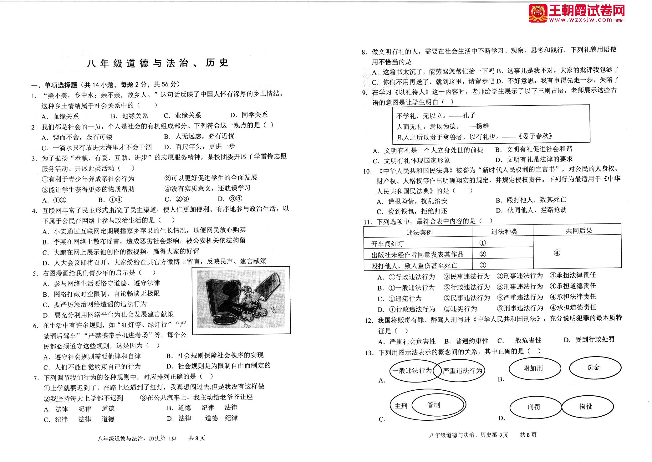 湖北省武汉市武昌区拼搏联盟2023-2024学年上学期期中联考八年级道德与法治、历史综合试题(人教版)