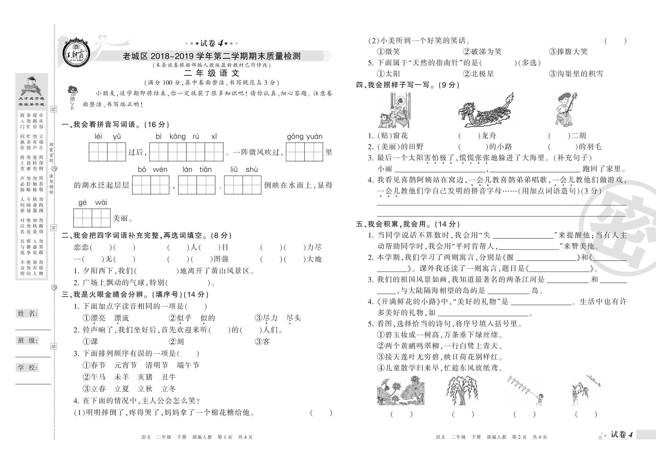 2018-2019学年第二学期洛阳市老城区二年级语文试卷(人教版)【4】