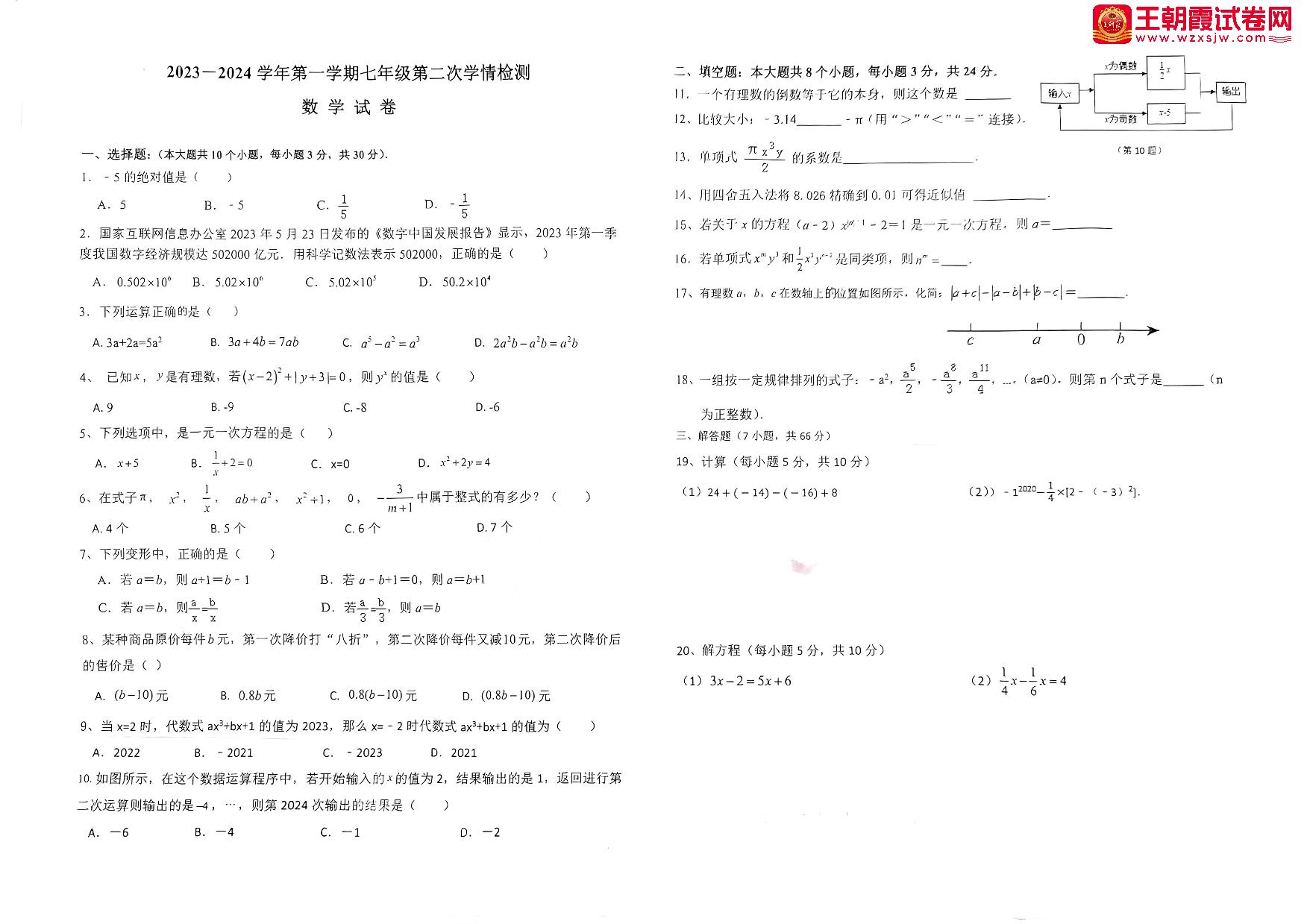 七年级数学人教版上册期中卷