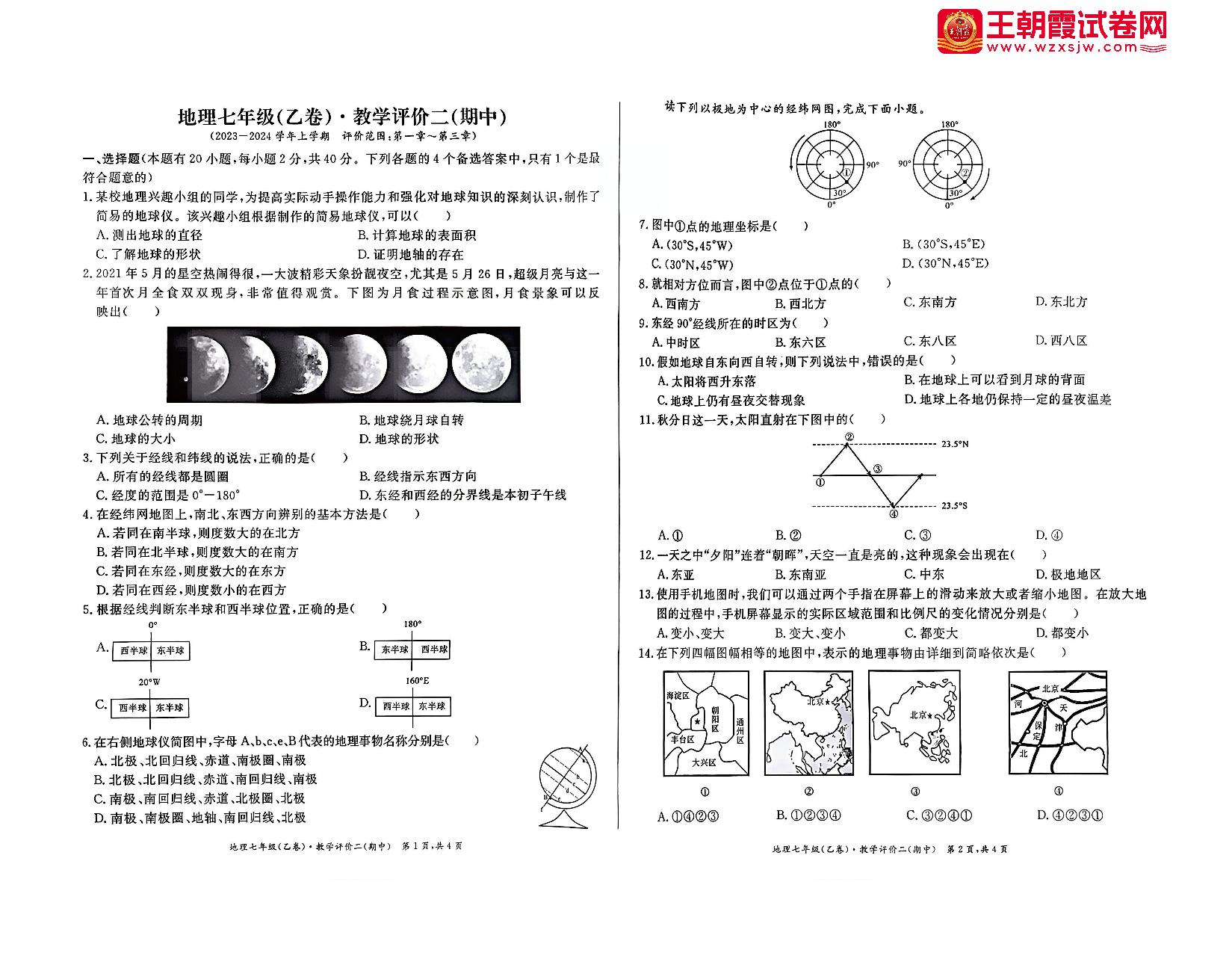 安徽省铜陵市铜官区部分学校2023-2024学年教学评价(期中)七年级地理(人教版)