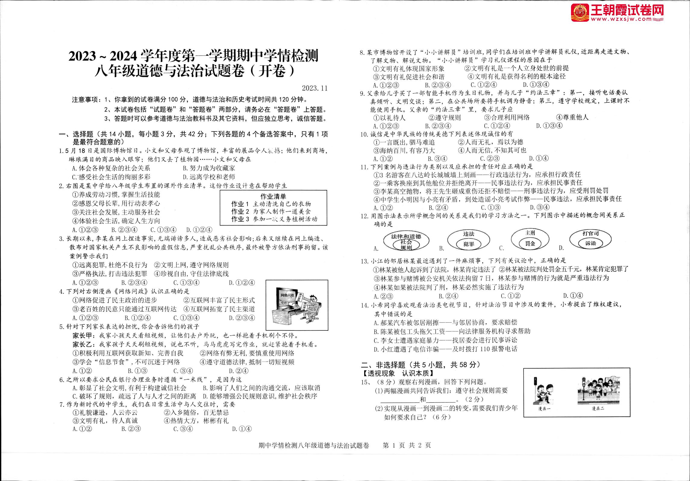 八年级道德与法治人教版上册期中卷