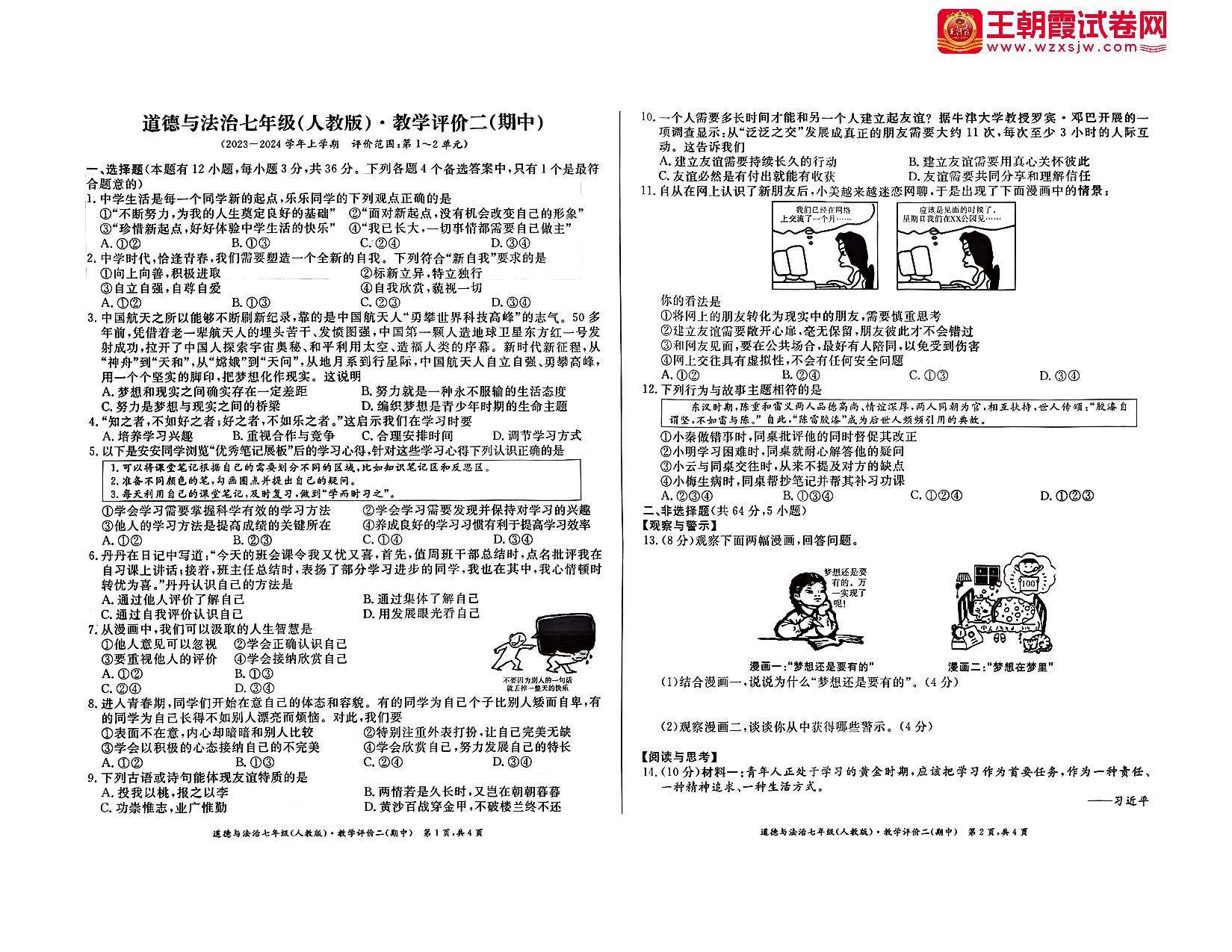 七年级道德与法治人教版上册期中卷