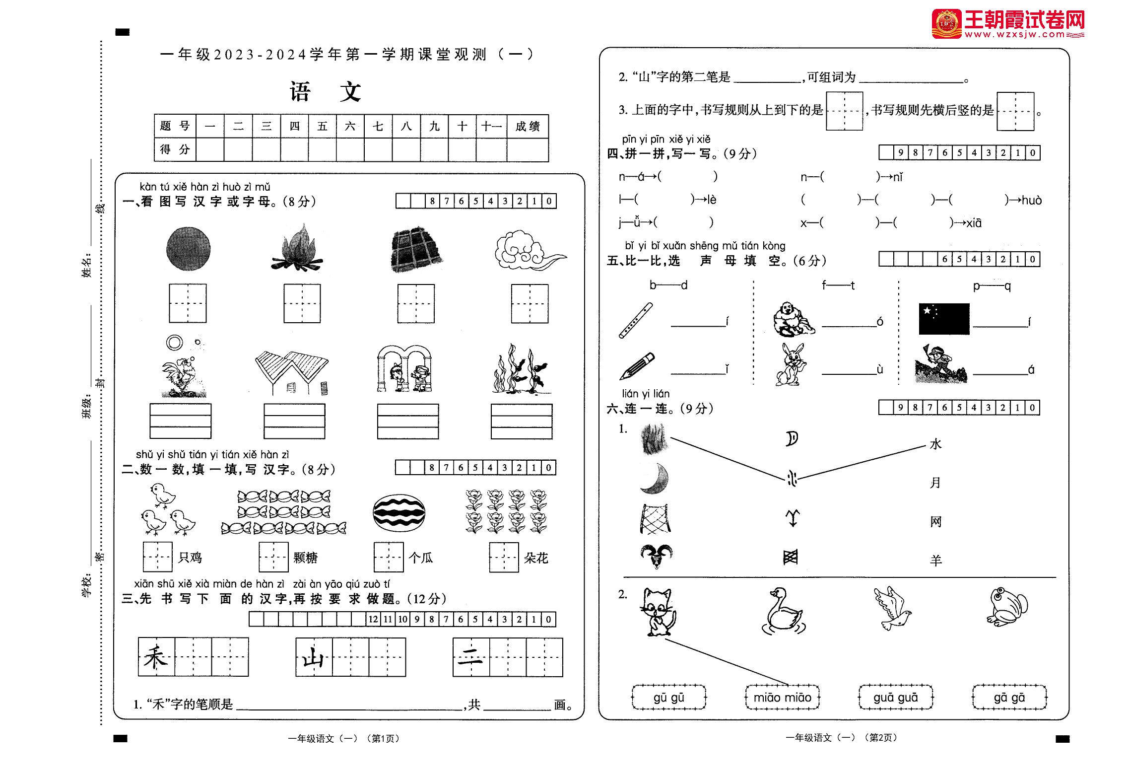 一年级语文人教版上册月考卷