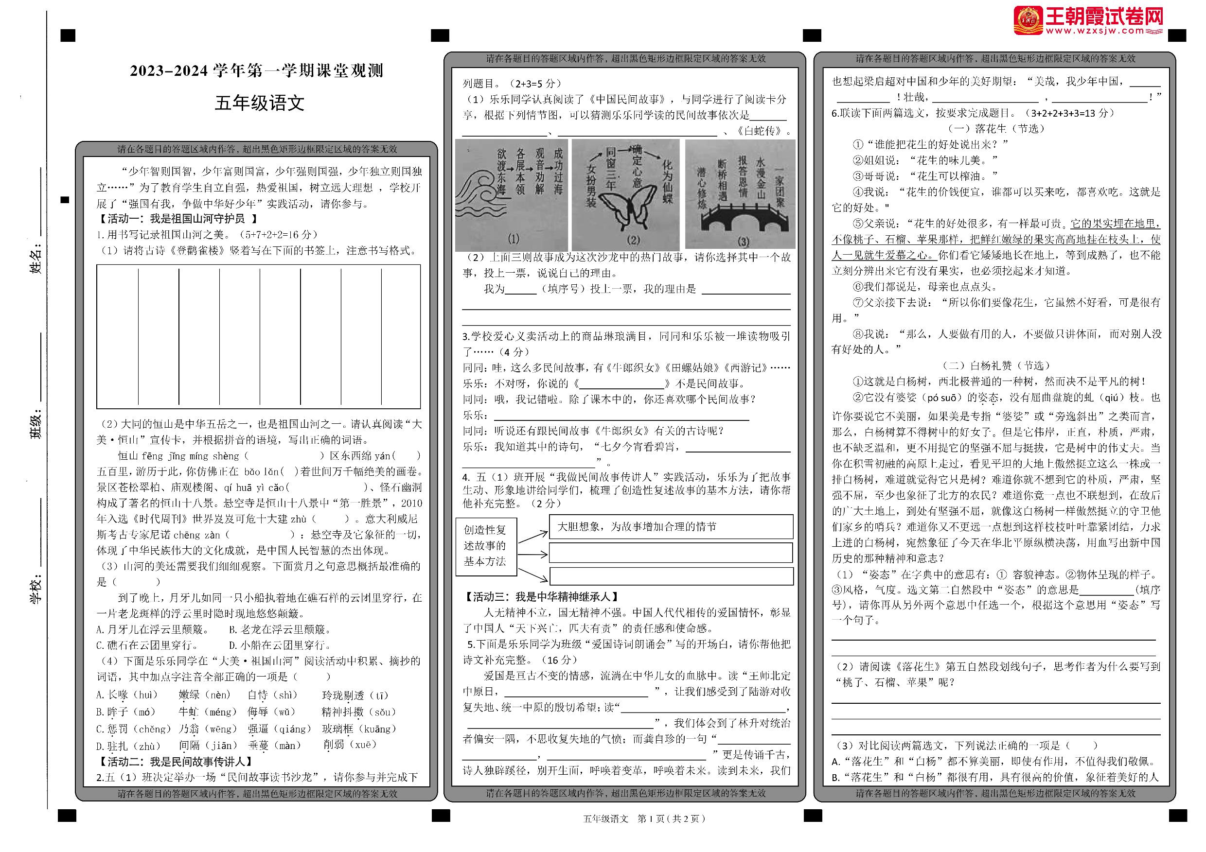 山西省大同市2023-2024学年第一学期期中课堂观测五年级语文(人教版)