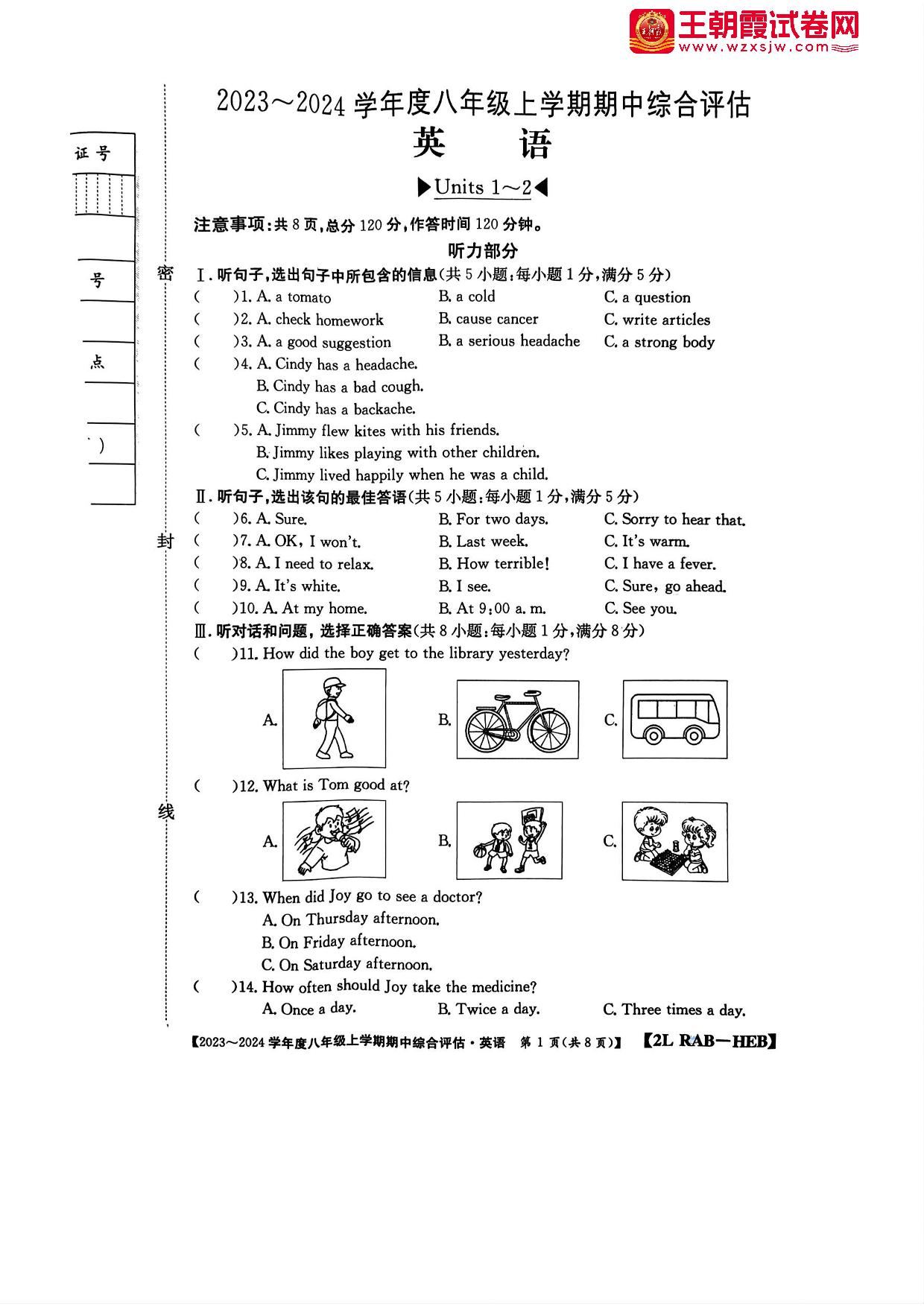 河北省邢台市英华中学2023-2024学年度上学期期中综合评估八年级英语(新课标版)