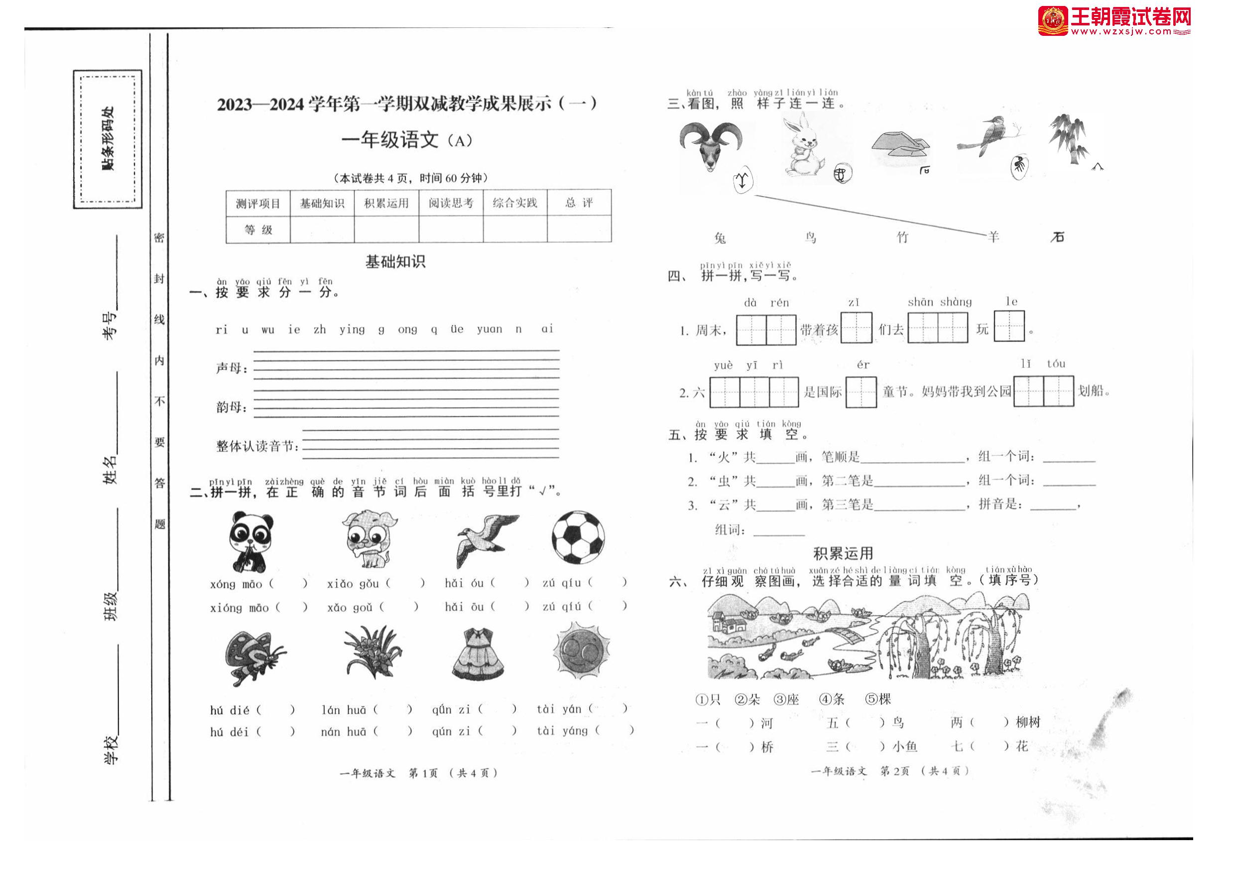 山西省忻州市2023-2024学年第一学期期中双减效果展示(一)一年级语文(人教版)