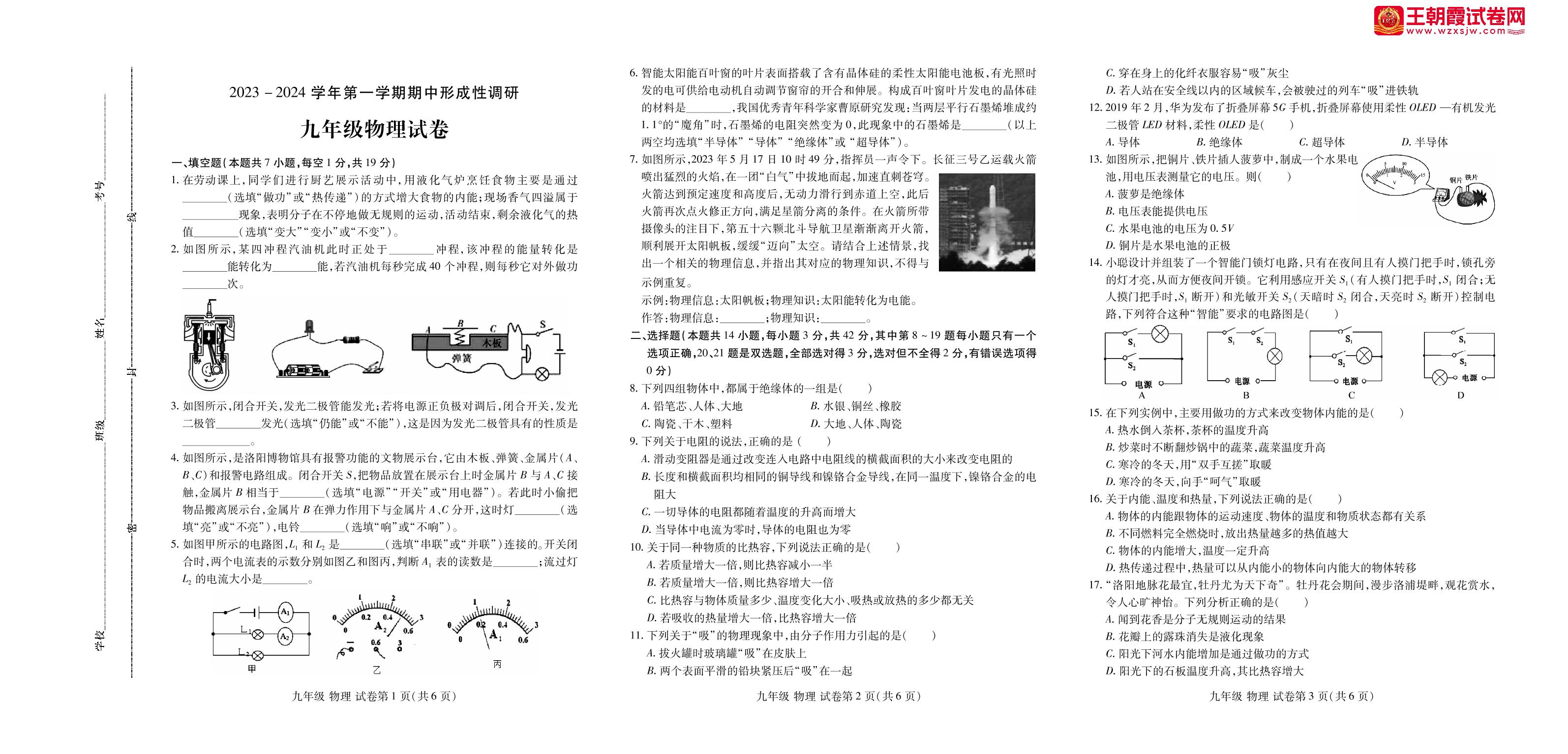 河南省洛阳市洛龙区2023-2024学年第一学期期中形成性调研试卷九年级物理(人教版)