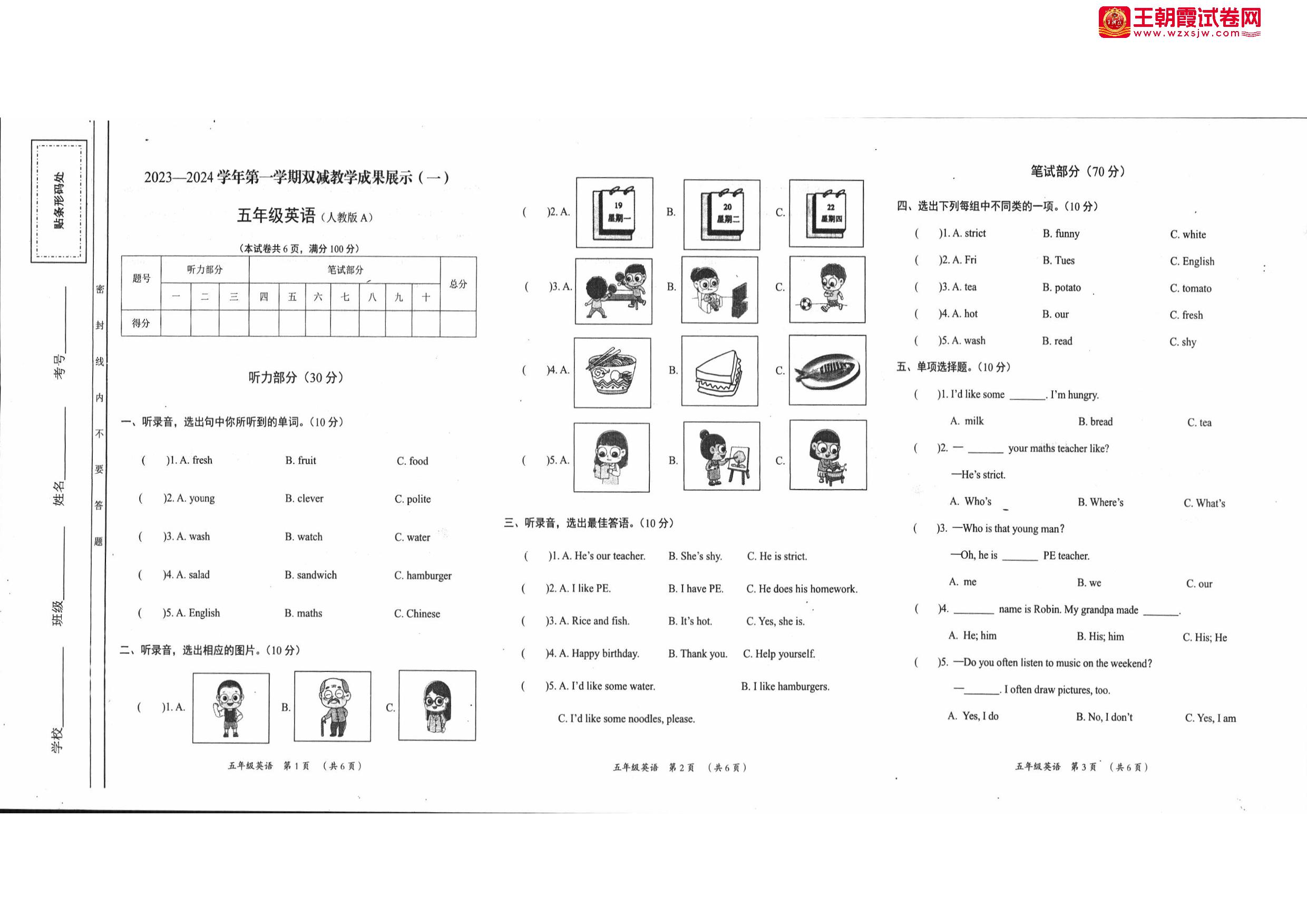 山西省忻州市2023-2024学年第一学期双减效果展示(期中)五年级英语(人教PEP版)【无听力音频】