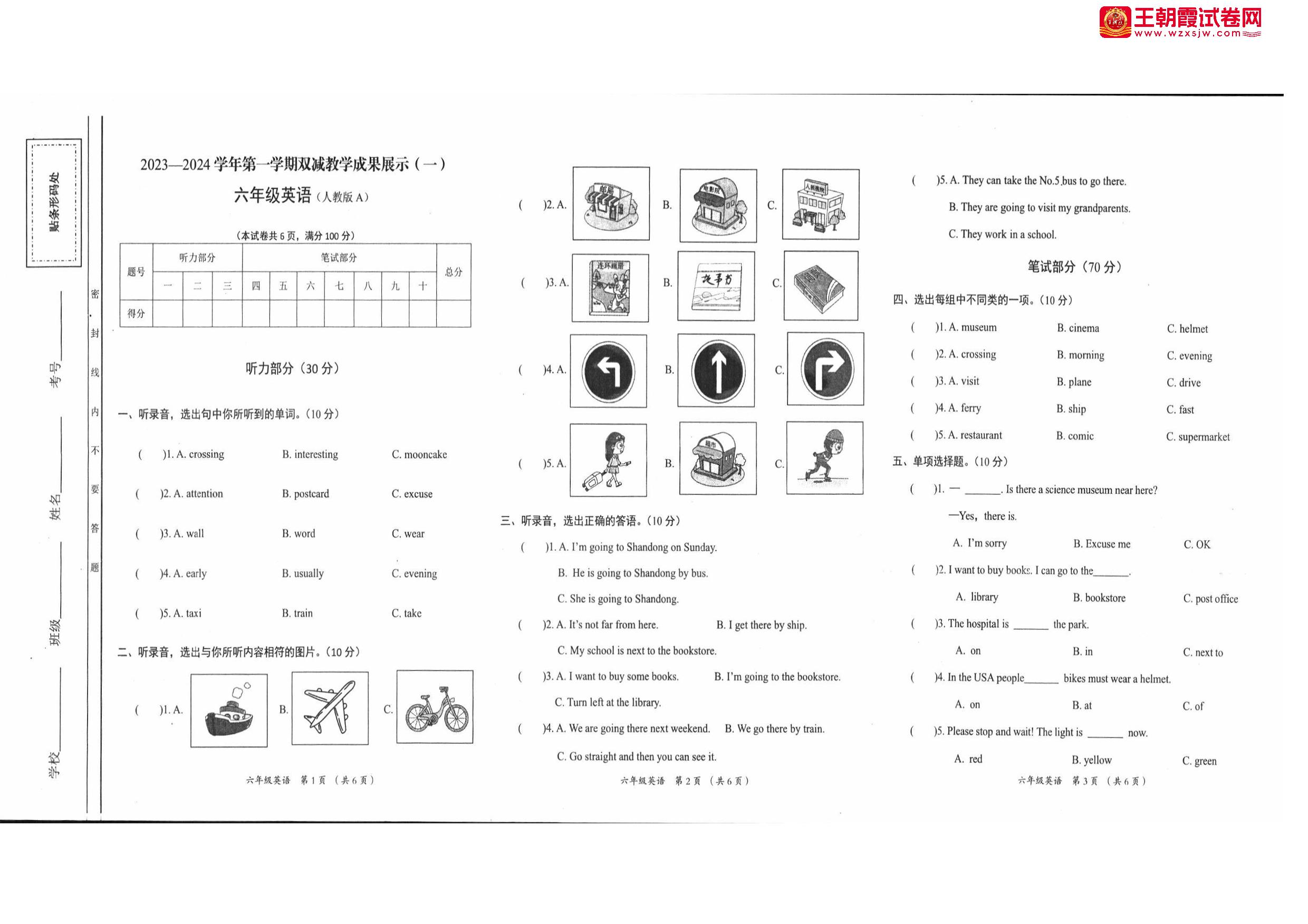 山西省忻州市2023-2024学年第一学期双减效果展示(期中)六年级英语(人教PEP版)【无听力音频】