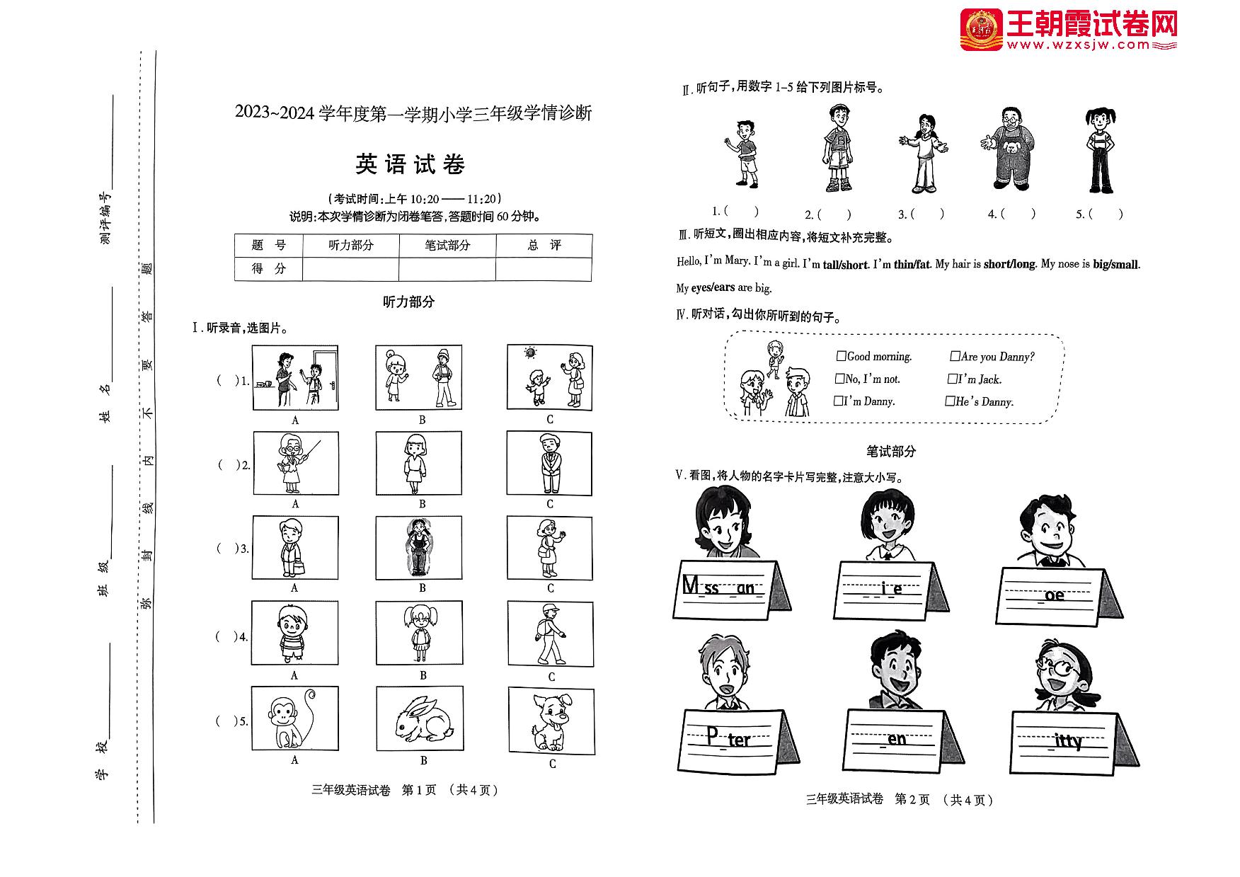 山西省太原市2023-2024学年度第一学期期中学情诊断三年级英语(沪教版)【无听力音频】