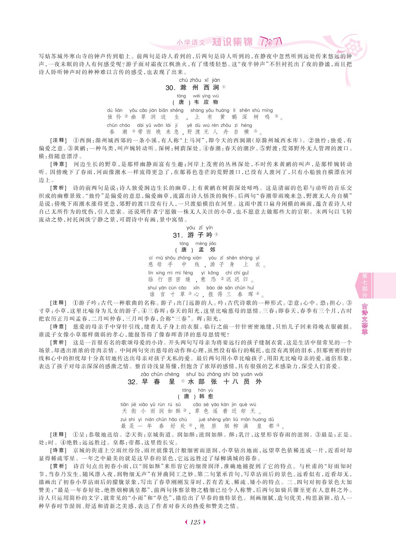 【小学语文知识大集结】第七部分 古诗文荟萃(二):小学生必背的75首古诗词(31-45首)