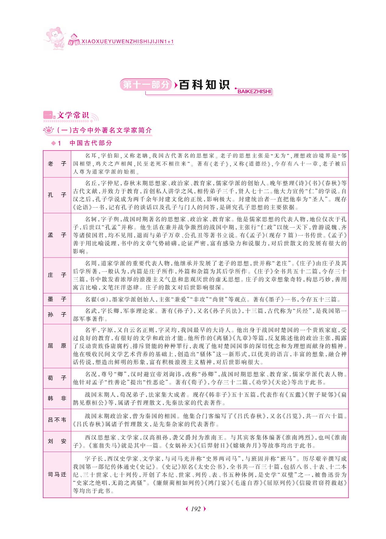 【小学语文知识大集结】第十一部分 百科知识(一)文学常识一:古今中外著名文学家简介
